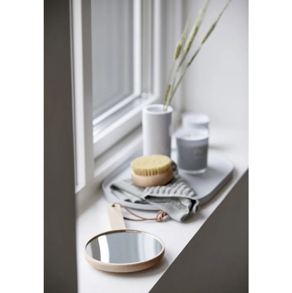 Makeupspejl fra Zone Denmarks spaserie Inu, der oser af moderne luksus med sit enkle organiske design og dekorative lyse bøgetræ. Spejlet er en lækker nyfortolkning af det klassiske håndspejl, og spejlglasset er monteret i en ramme, så det kan pynte med glassiden nedad uden at blive ridset. Længde 27 cm, bredde 14 cm.
