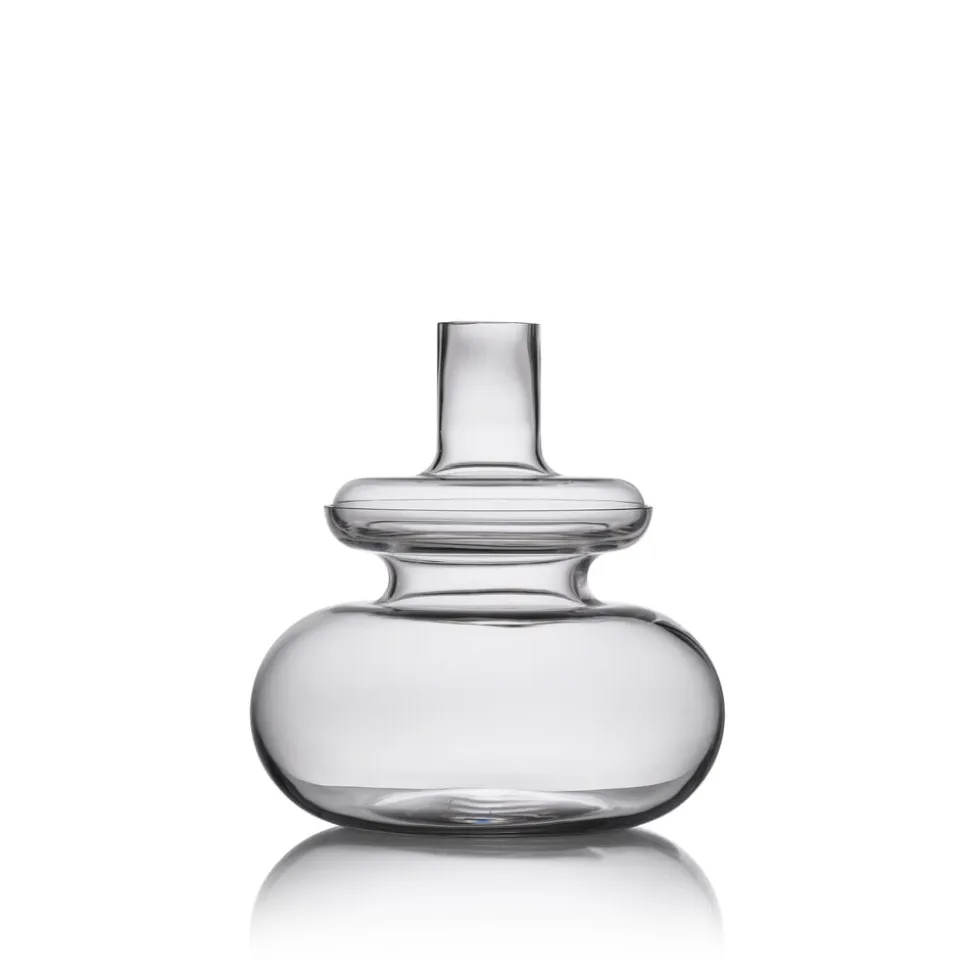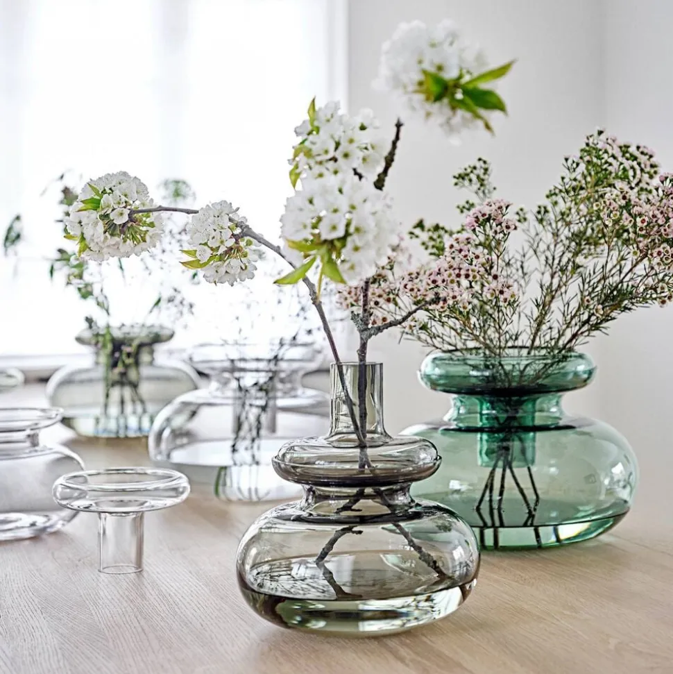 Vasen består af to dele, hvor topstykket kan vendes. Vender du halsen nedad, er vasen den perfekte base for høje buketter. Vender du halsen opad, støtter den elegant op om nogle få grene eller enkelte stilke. Fjerner du topstykket helt, har du en smuk organisk omfavnelse af store tætte buketter.