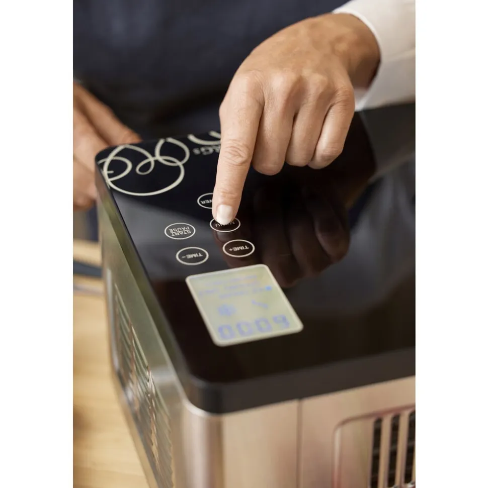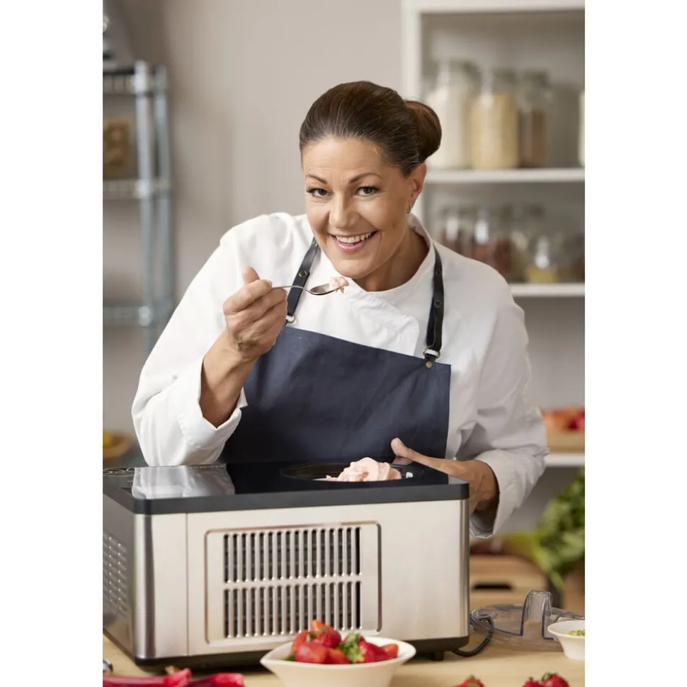 Lav lækre hjemmelavede sorbeter og legerede iscremer til familien på under en time. Blomsterbergs ismaskine har indbygget kompressor til køling, så du ikke behøver at nedfryse røreskålen i forvejen. 2 l skål, LED-display og touch-betjening. 180 watt.