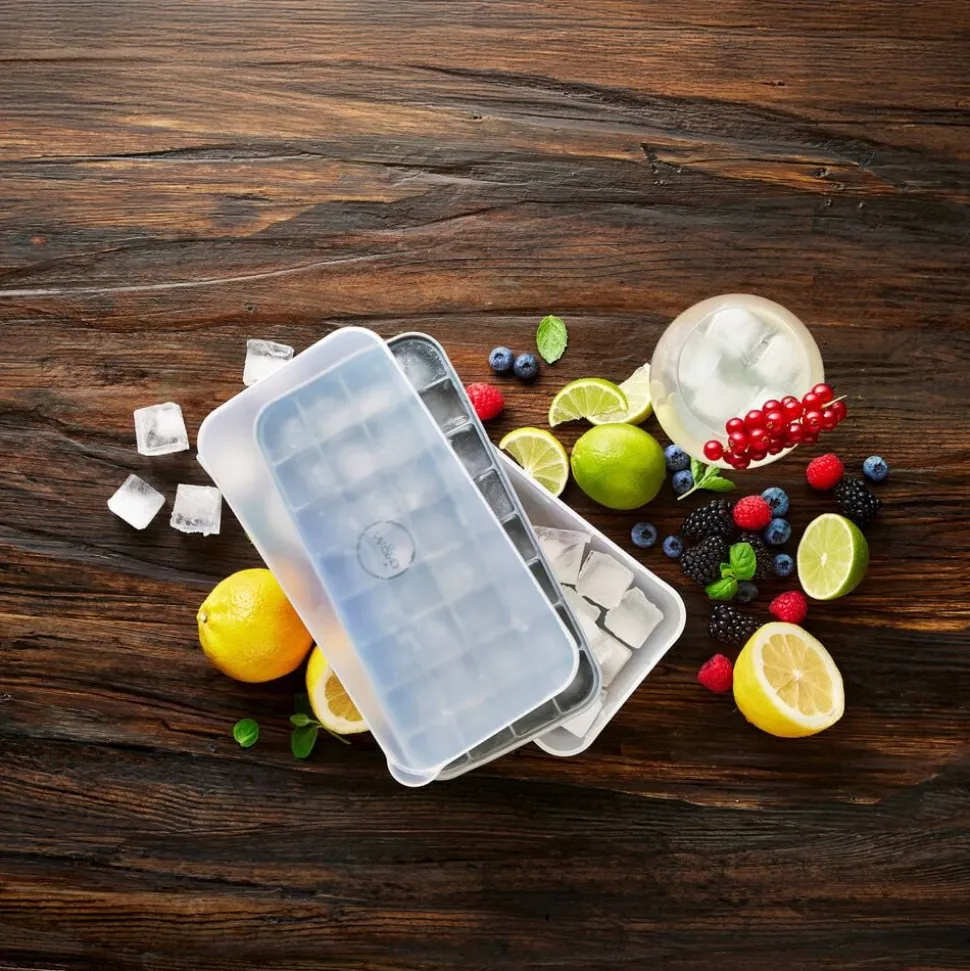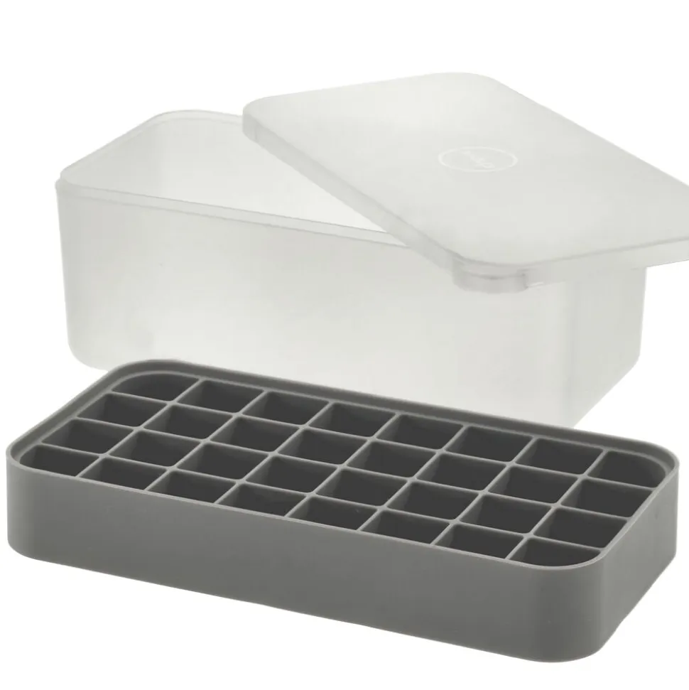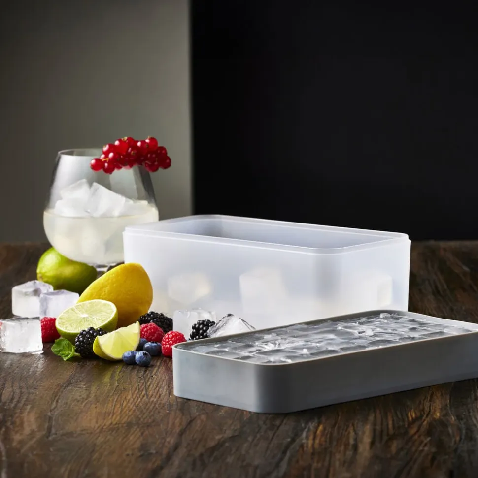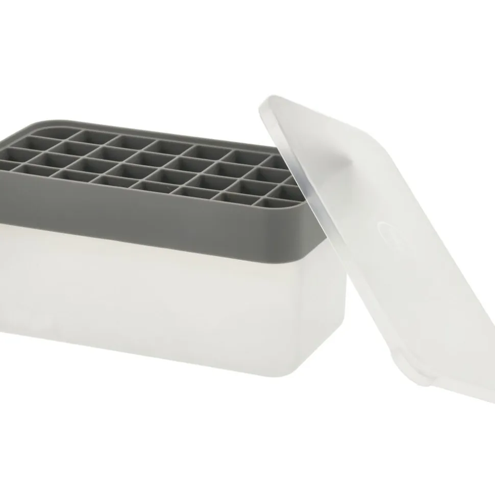 Isterningebakken er af silikone, låg og opbevaringsbeholder er af plast. Bakken har plads til 32 isterninger af hver 15 ml væske. Isterningerne kan opbevares i beholderen, mens der produceres flere isterninger i bakken.