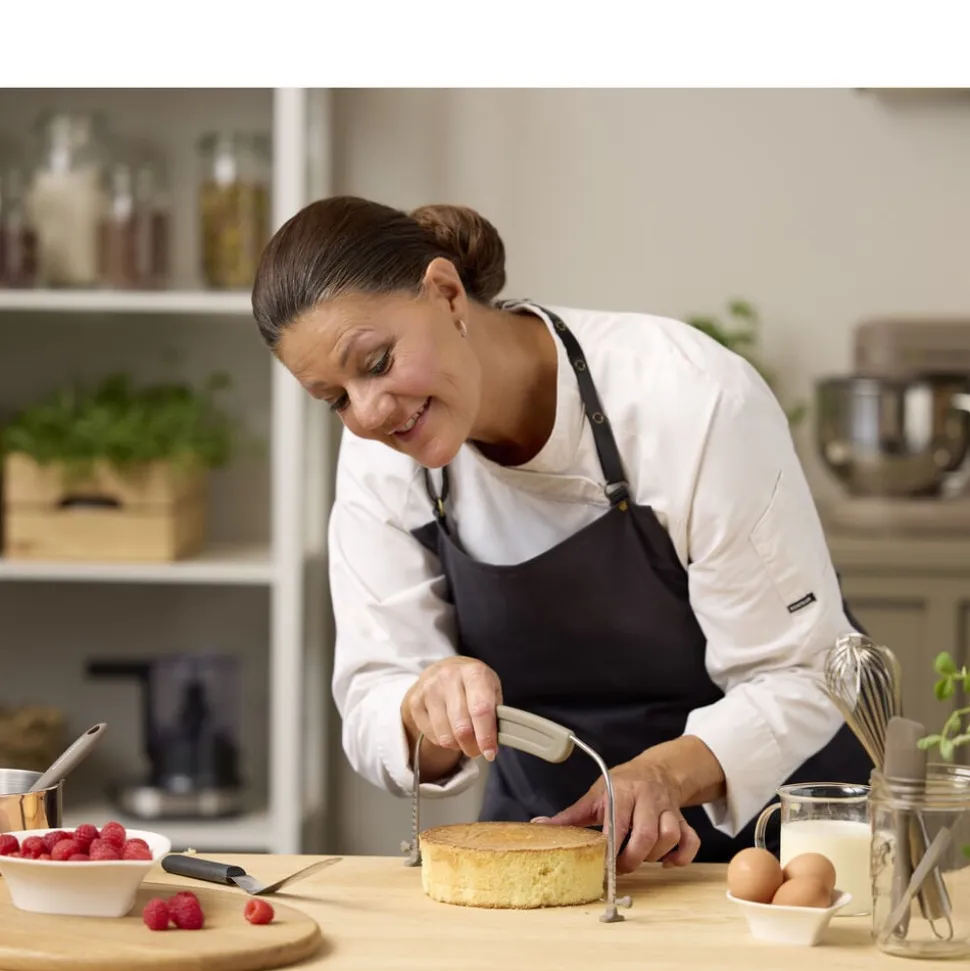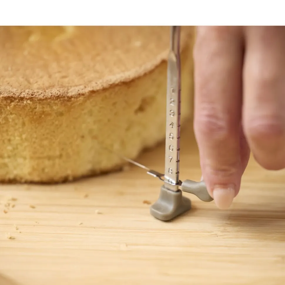 Med denne justerbare kagebundsdeler kan du skære dine hjemmebagte kagebunde med et pænt, lige snit. For det bedste resultat, sørg for, at kagen er helt afkølet, før du begynder at skære, og brug små savende bevægelser. Juster højden på kagebundsdeleren, så du får præcis den tykkelse, du ønsker. Velegnet til kager med en diameter på op til 25 cm. Vaskes med varmt vand og sæbe før første brug. Håndopvask anbefales.