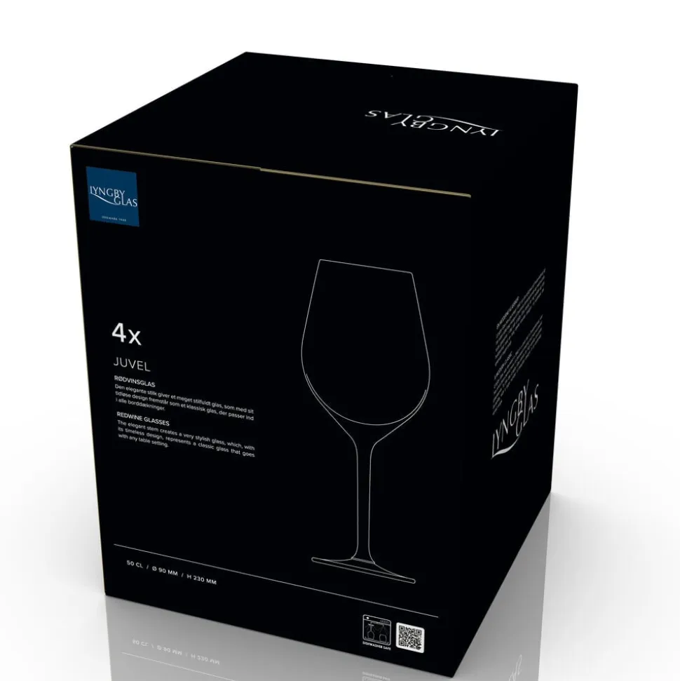 4 rødvinsglas, 50 cl. Den elegante stilk giver et meget stilfuldt glas, som med sit tidløse design fremstår som et klassisk glas, der passer ind i alle borddækninger. 23 cm.