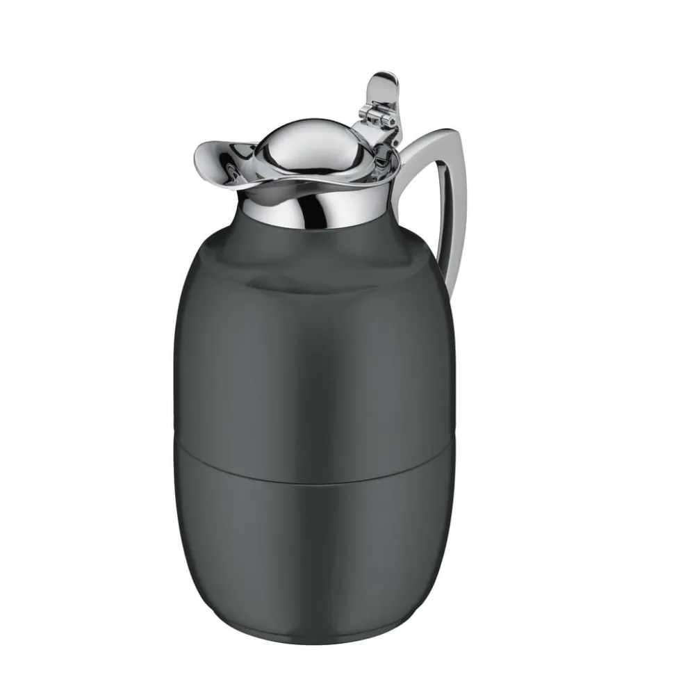 Alfi Juwel er en af verdens mest kendte termokander, og det oprindelige stilrene design kan dateres helt tilbage til 1918. Termokande i poleret stål i høj kvalitet. Dobbeltvægget AlfiDur-indsats i isolerende og hærdet vakuum-glas. Holder varmt i 12 timer, holder koldt i 24 timer. Unikt og praktisk hældesystem. Kan betjenes med én hånd. Ergonomisk, forkromet metalhåndtag.