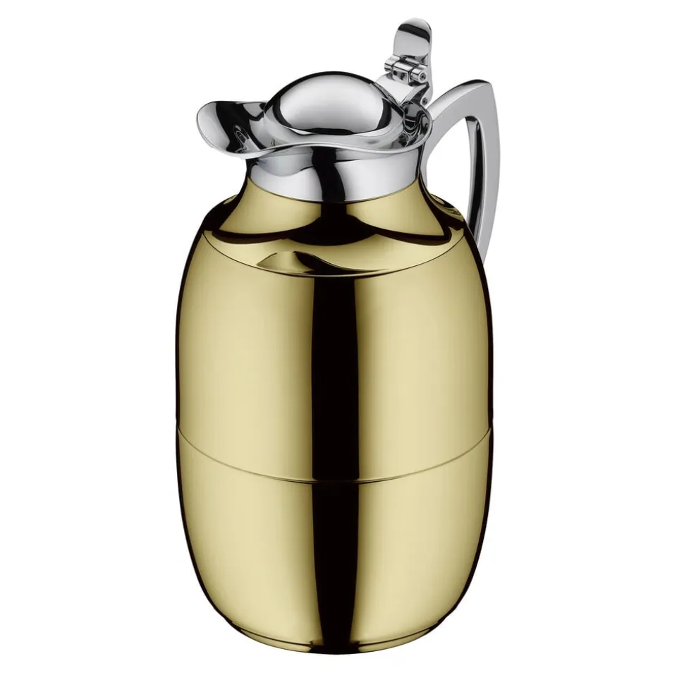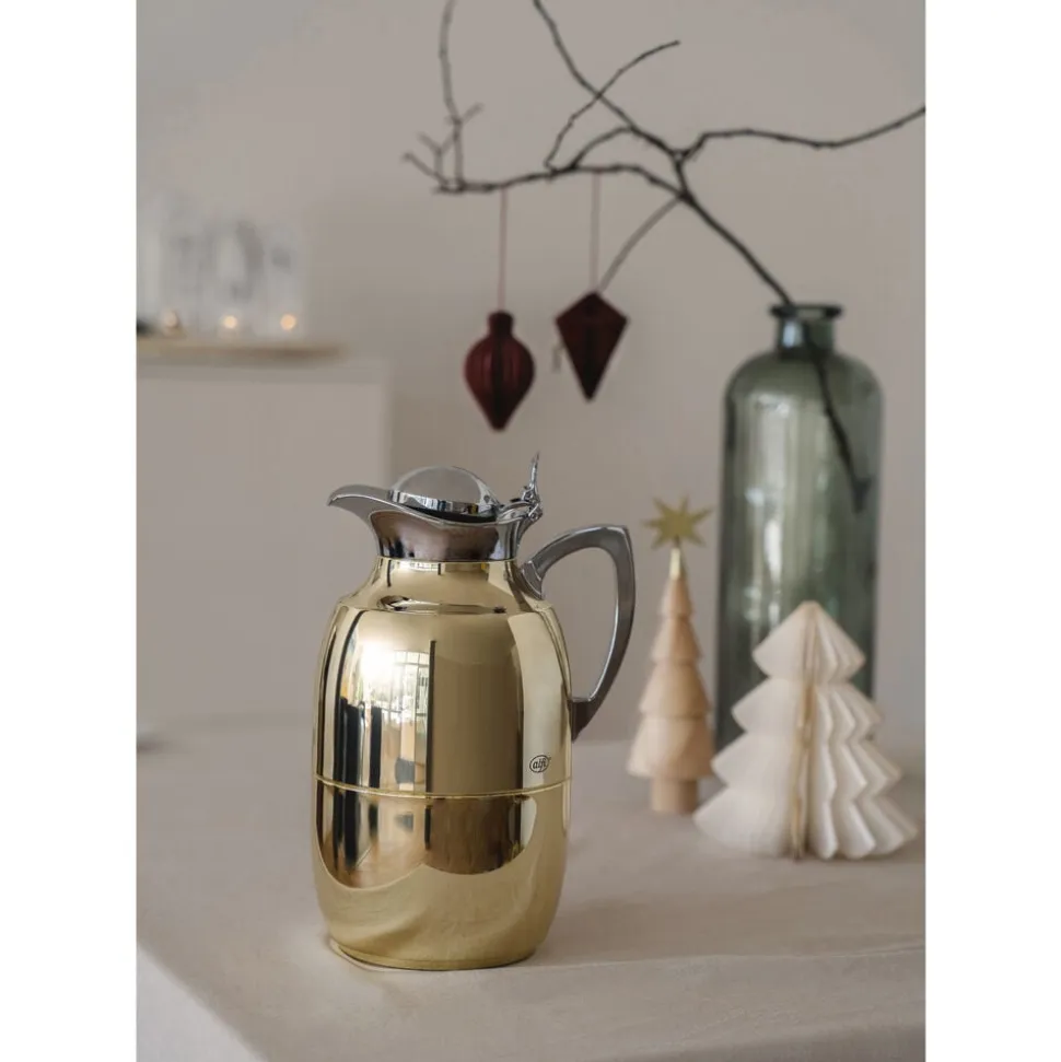 Alfi Juwel er en af verdens mest kendte termokander, og det oprindelige stilrene design kan dateres helt tilbage til 1918. Termokande i poleret stål i høj kvalitet. Dobbeltvægget AlfiDur-indsats i isolerende og hærdet vakuum-glas. Holder varmt i 12 timer, holder koldt i 24 timer. Unikt og praktisk hældesystem. Kan betjenes med én hånd. Ergonomisk, forkromet metalhåndtag.