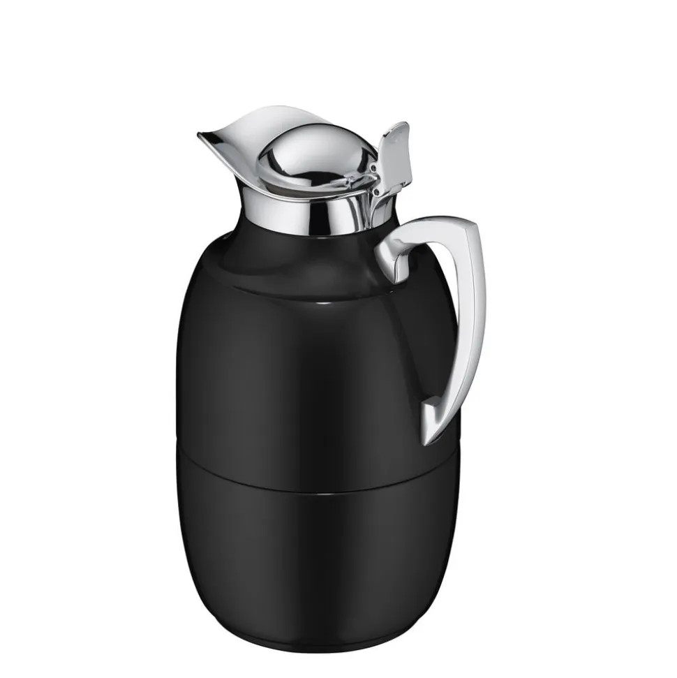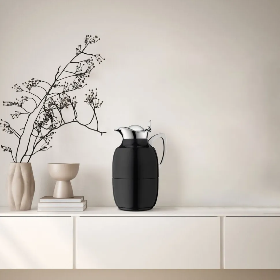 Alfi Juwel er en af verdens mest kendte termokander, og det oprindelige stilrene design kan dateres helt tilbage til 1918. Termokande i poleret stål i høj kvalitet. Dobbeltvægget AlfiDur-indsats i isolerende og hærdet vakuum-glas. Holder varmt i 12 timer, holder koldt i 24 timer. Unikt og praktisk hældesystem. Kan betjenes med én hånd. Ergonomisk, forkromet metalhåndtag.