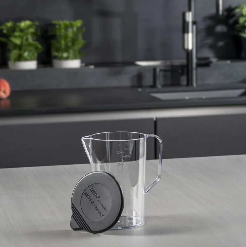 bamix®-mixekande med låg, 1000 ml. Formen er designet til brug sammen med en bamix®-stavblender. Materialet er stødsikkert, modstår ridser og er varmeresistent op til 150 grader. Kan bruges i fryseren og mikrobølgeovnen (uden låg).