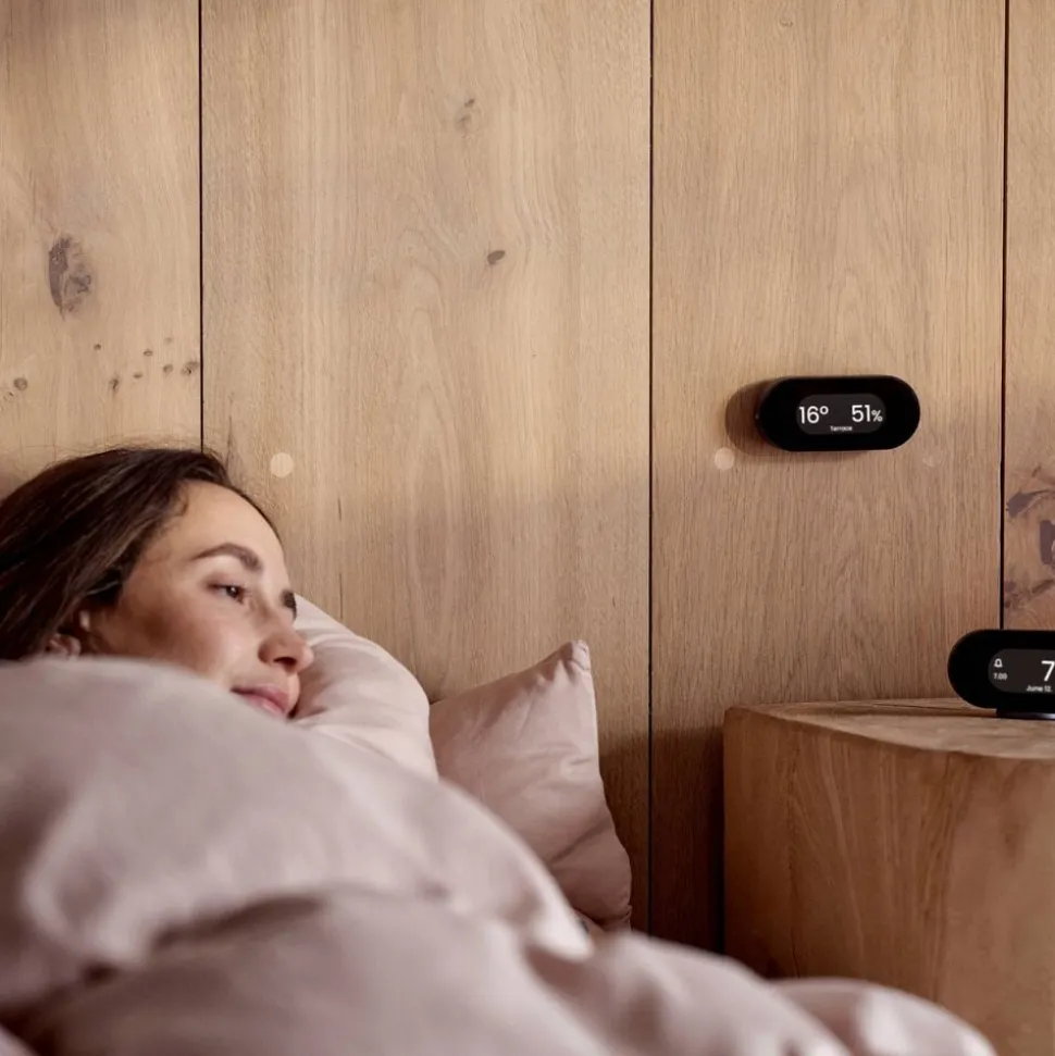 Klimastationen er en genfortolkning af en Jacob Jensen-klassiker. Den viser temperaturen der, hvor den er placeret indendørs. Klimastationen har et klart E-Ink-display, som ikke kun er behageligt for øjnene, men også reducerer strømforbruget betydeligt. Desuden er klimastationen magnetisk og leveres med et bordstativ og et vægophæng, så den nemt kan placeres på et bord eller monteres på en væg. Der medfølger 3M tape til ophængning, hvis man ikke ønsker at bruge skruer. Den bruger 2 CR2450-batterier (medfølger ikke).