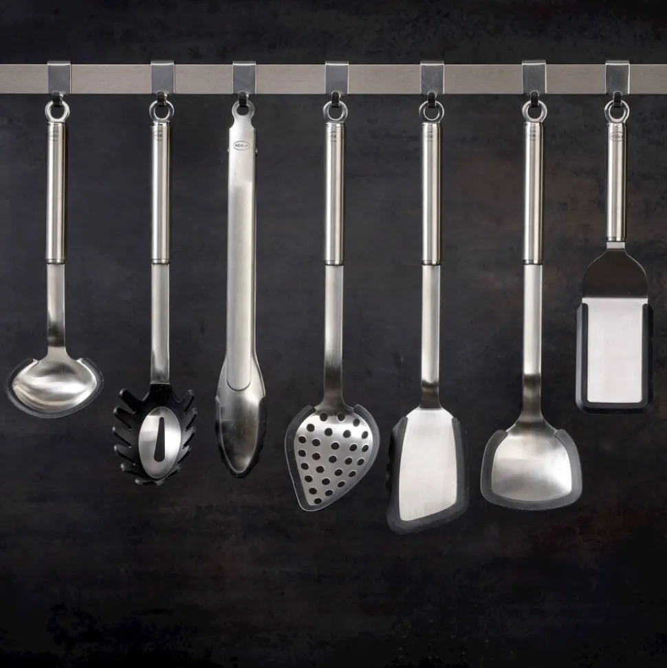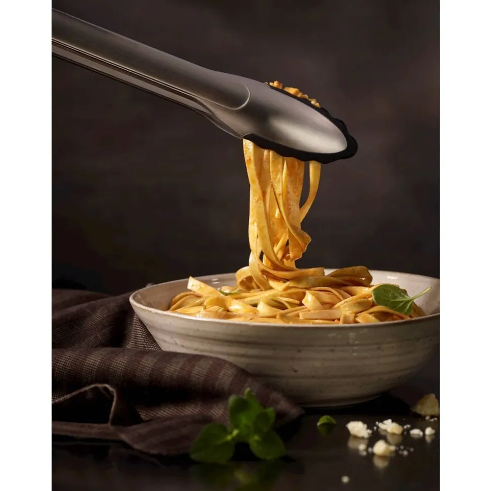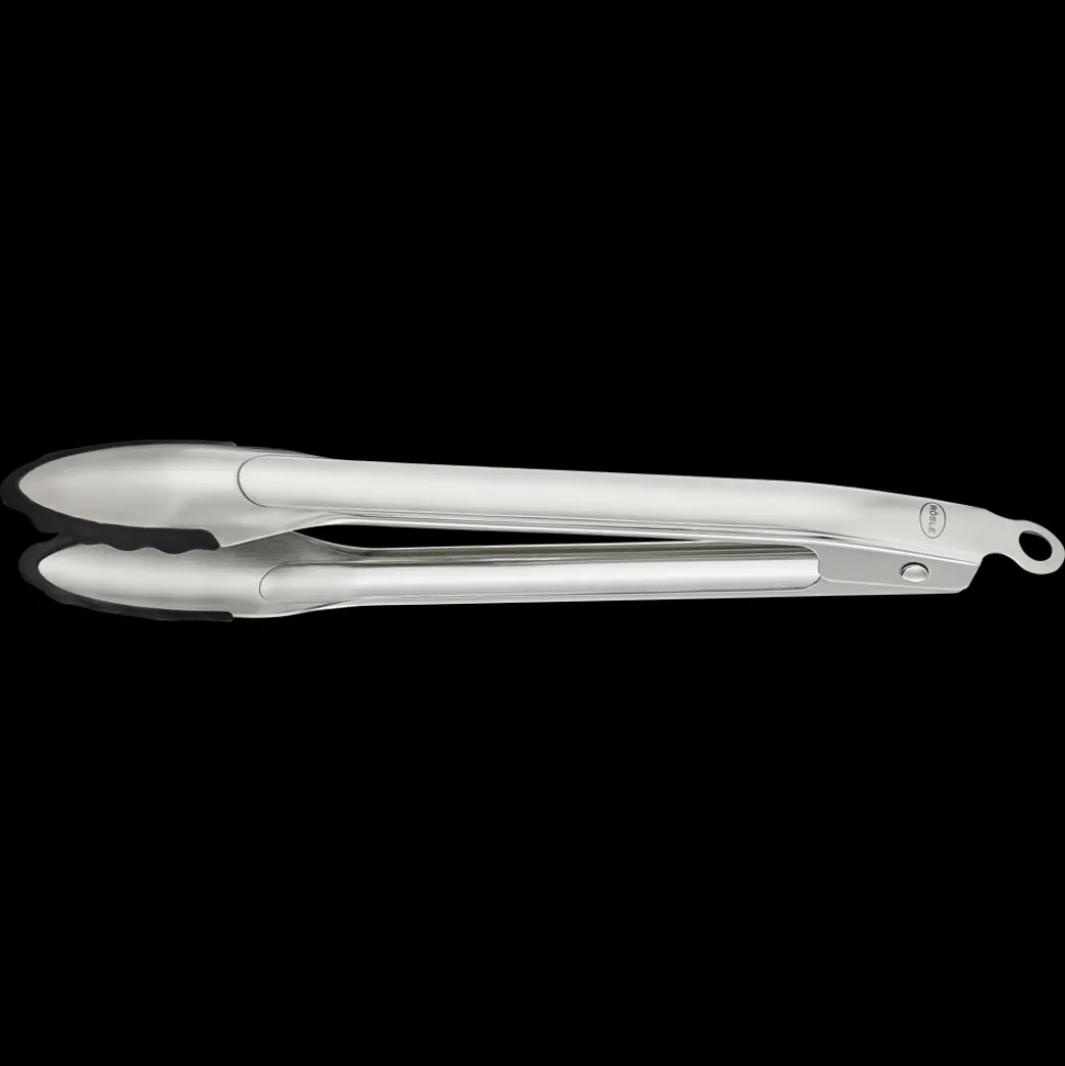 RÖSLE køkkentang med patenteret åbnemekanisme, der gør det muligt at åbne og låse tangen med kun én hånd. Silikonebelægningen forhindrer ridser i kogegrej med belægning eller rustfrit stål. Tåler temperaturer op til 260 °C. Tåler opvaskemaskine.