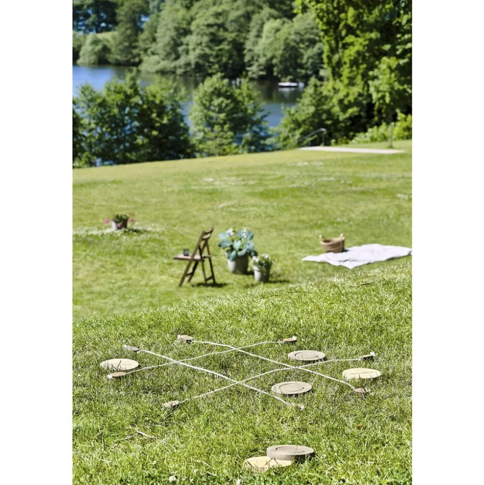 Spil det hyggelige kryds og bolle i haven, i sommerhuset, på stranden eller til havefesten. Spillet består af tre brikker til hver spiller og går ud på at få sine brikker placeret på stribe før modstanderen. Der medfølger spilleregler på dansk og engelsk, bomuldssnor til opsætning af spillet samt en lækker stofpose til transport og opbevaring af spillet. Spildelene er fremstillet af robust og smukt bejdset gummitræ med et flot, naturligt udtryk, idet træets nuancer og struktur varierer fra del til del. Tør delene over med en fugtig klud efter brug og opbevar dem altid i tør og rengjort stand, så holder spillet længere og giver større fornøjelse.