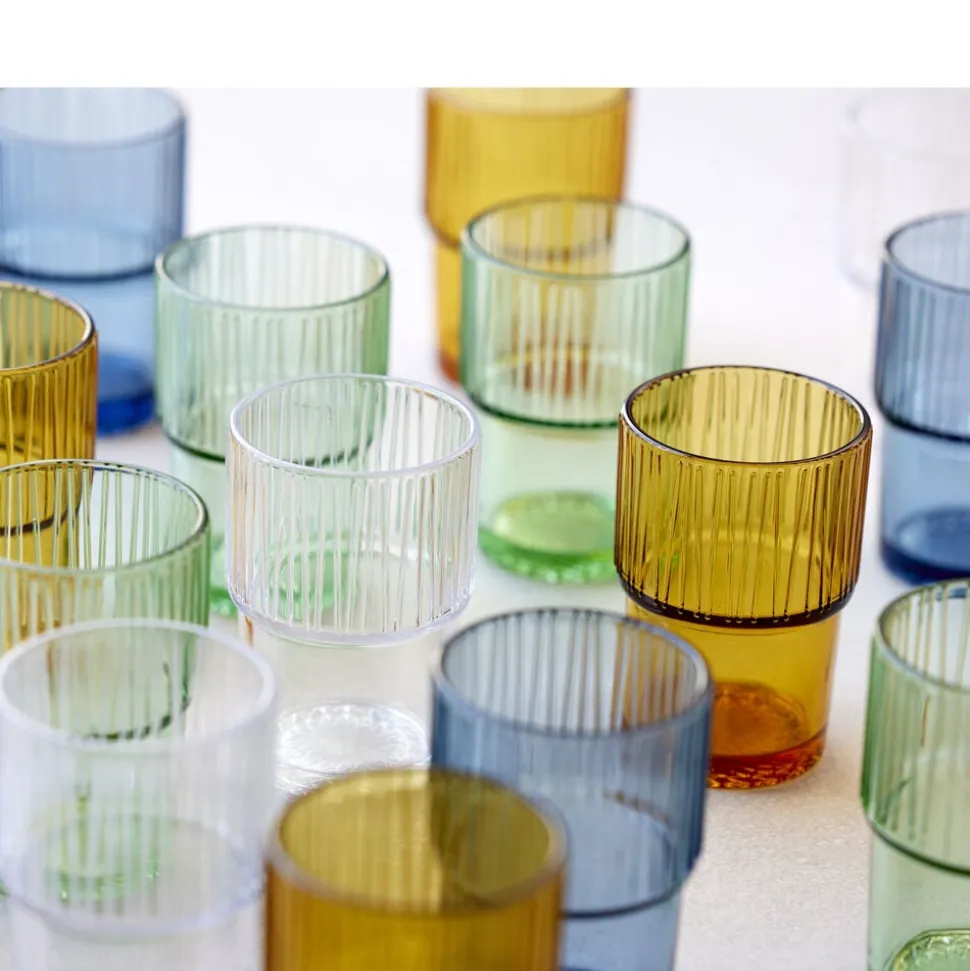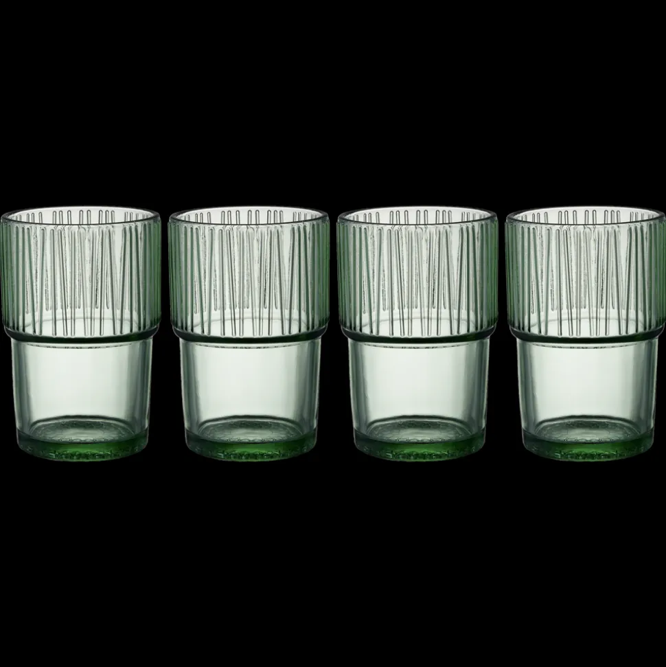 4 stabelbare caféglas, 38 cl, i gennemfarvet glas til både kolde og varme drikke. Nyd caffe latte, te, chai latte, varm kakao og meget andet af de smukke og solide glas, der gør hverdagen lidt skønnere. Velegnet til opvaskemaskine. Når du køber fra Kusintha-kollektionen, støtter du udsatte børn i verdens fattigste områder.