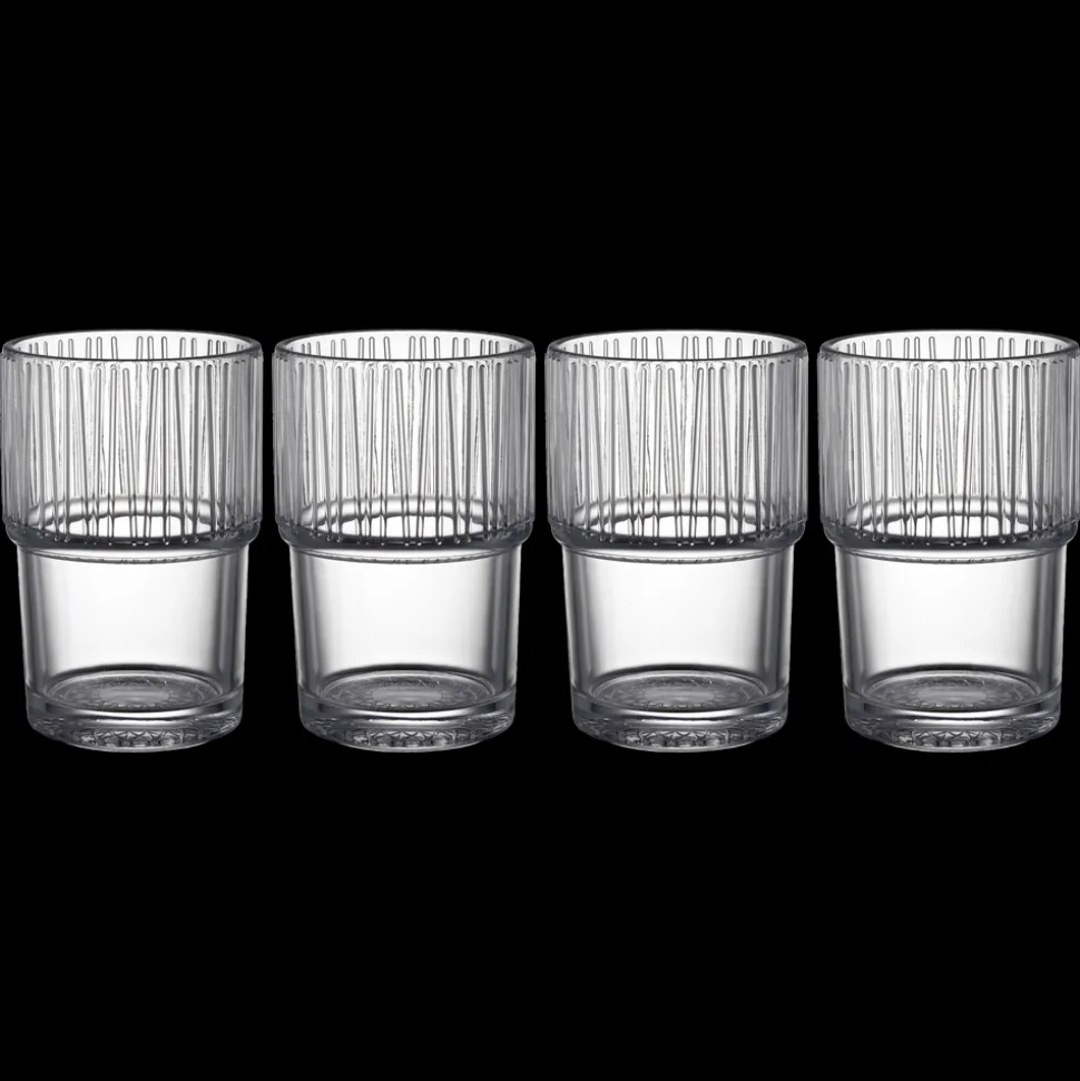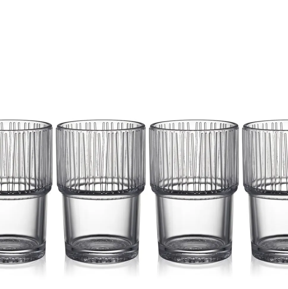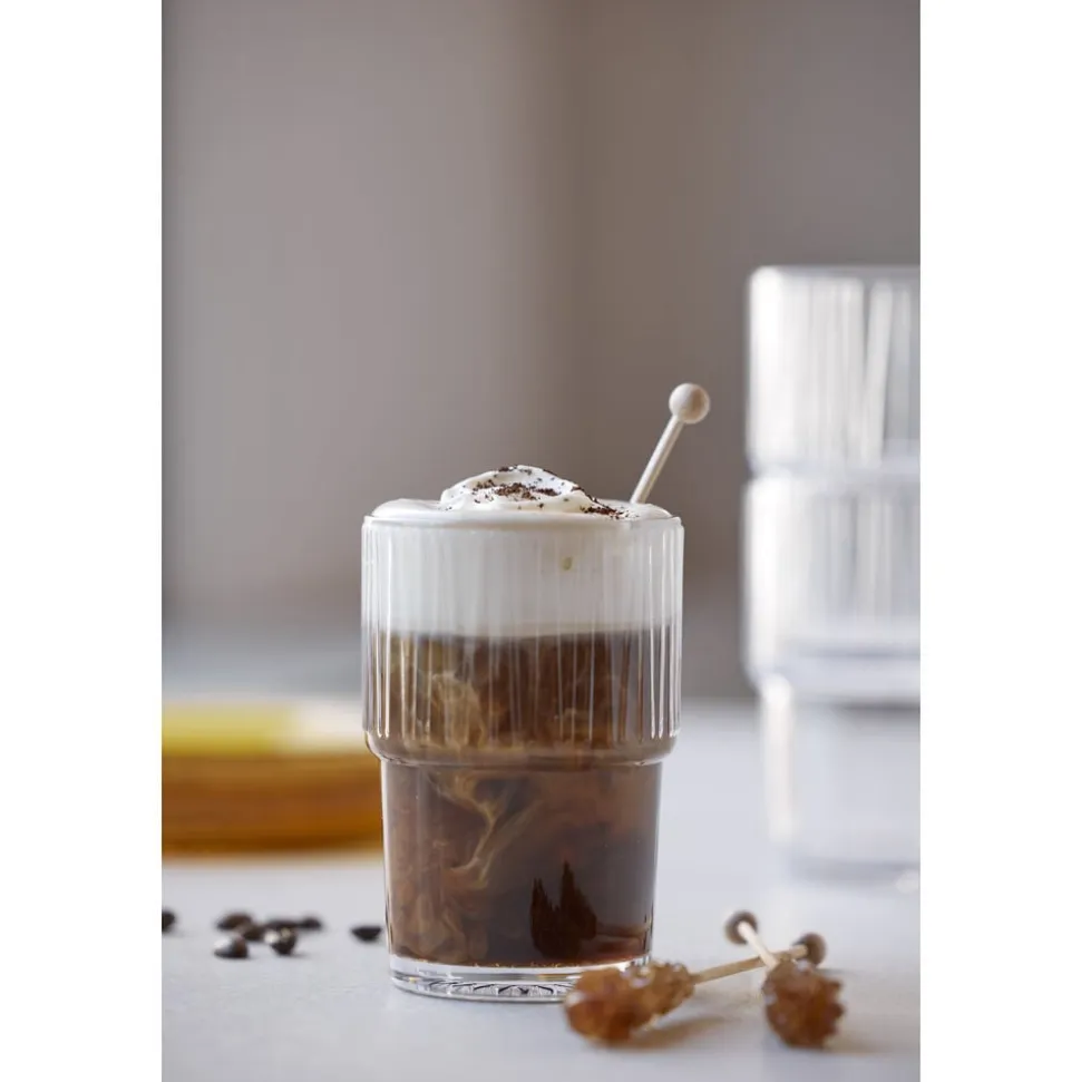 4 stabelbare caféglas, 38 cl, i gennemfarvet glas til både kolde og varme drikke. Nyd caffe latte, te, chai latte, varm kakao og meget andet af de smukke og solide glas, der gør hverdagen lidt skønnere. Velegnet til opvaskemaskine. Når du køber fra Kusintha-kollektionen, støtter du udsatte børn i verdens fattigste områder.