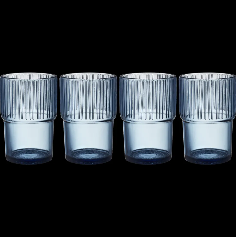 4 stabelbare caféglas, 38 cl, i gennemfarvet glas til både kolde og varme drikke. Nyd caffe latte, te, chai latte, varm kakao og meget andet af de smukke og solide glas, der gør hverdagen lidt skønnere. Velegnet til opvaskemaskine. Når du køber fra Kusintha-kollektionen, støtter du udsatte børn i verdens fattigste områder.