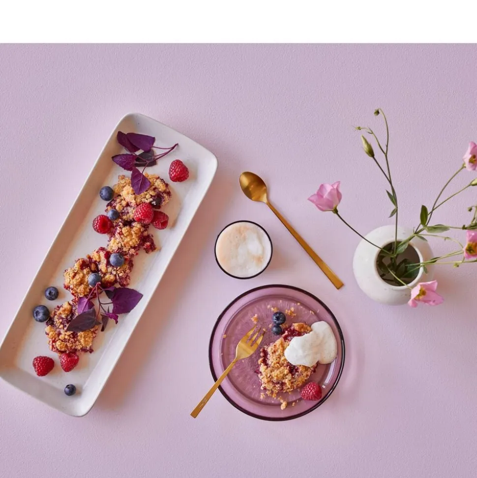 Dæk op med flotte tallerkener i gennemfarvet glas. Brug dem til forretter, salat, desserter, kager eller som et lille serveringsfad. Når du køber fra Kusintha-kollektionen, støtter du samtidig udsatte børn i verdens fattigste områder.