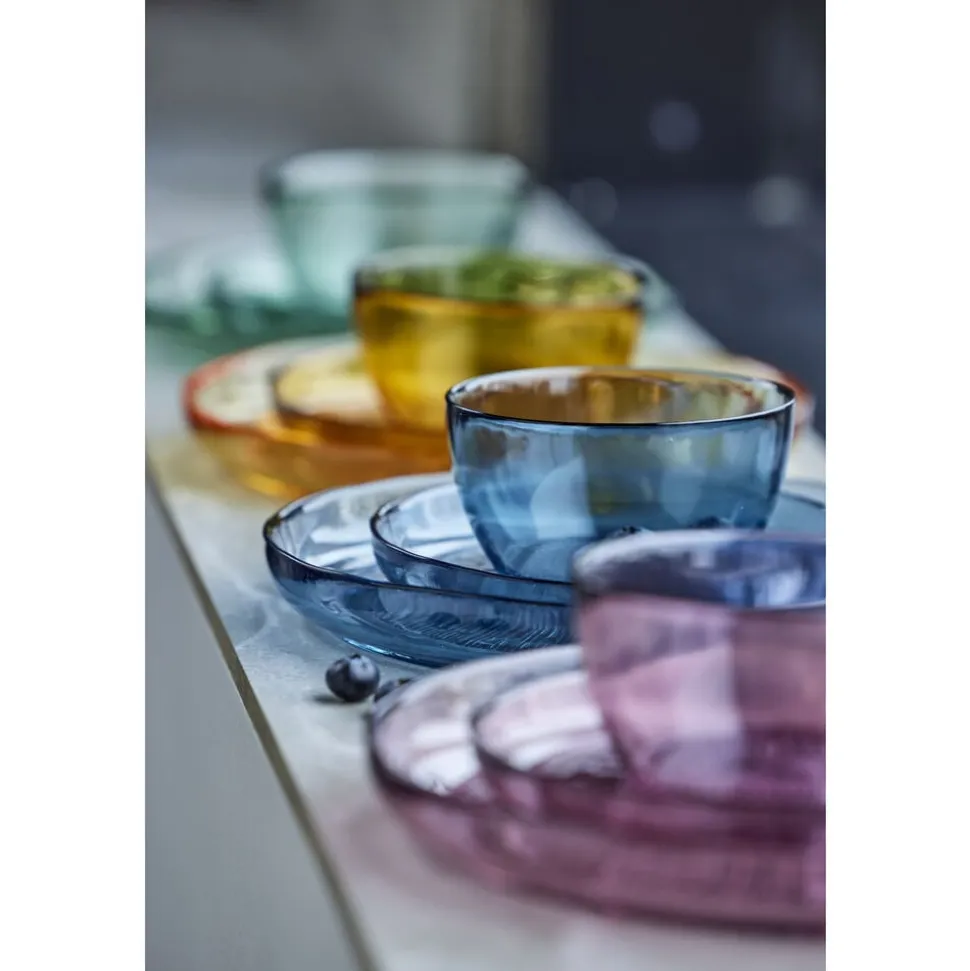 Dæk op med flotte tallerkener i gennemfarvet glas. Brug dem til forretter, salat, desserter, kager eller som et lille serveringsfad. Når du køber fra Kusintha-kollektionen, støtter du samtidig udsatte børn i verdens fattigste områder.