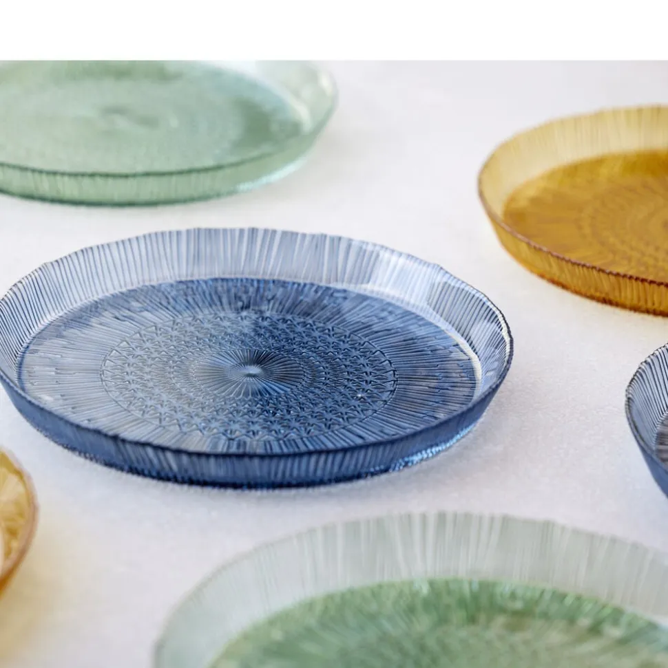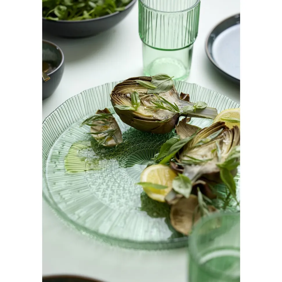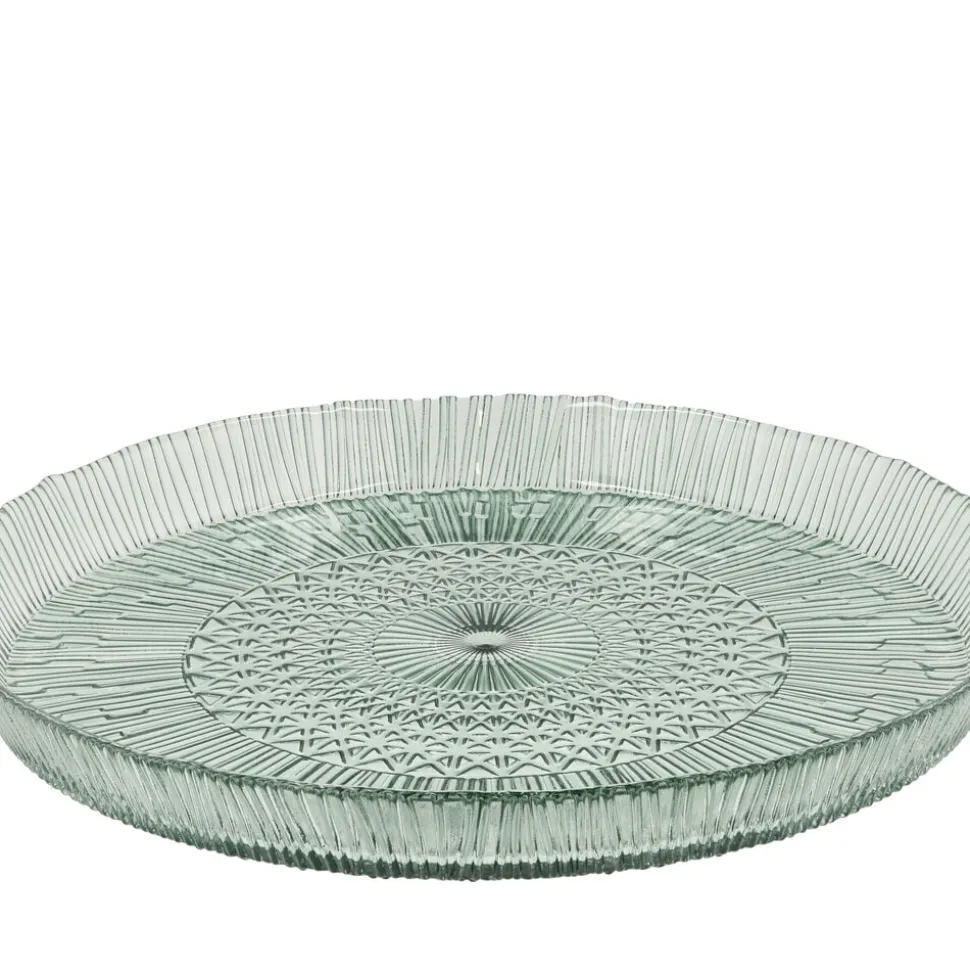 Det runde serveringsfad i gennemfarvet glas med en diameter på 30 cm gør maden endnu mere indbydende. Det er perfekt til servering af alt fra frugt til tapas. Velegnet til opvaskemaskine. Når du køber fra Kusintha-kollektionen, støtter du udsatte børn i verdens fattigste områder.