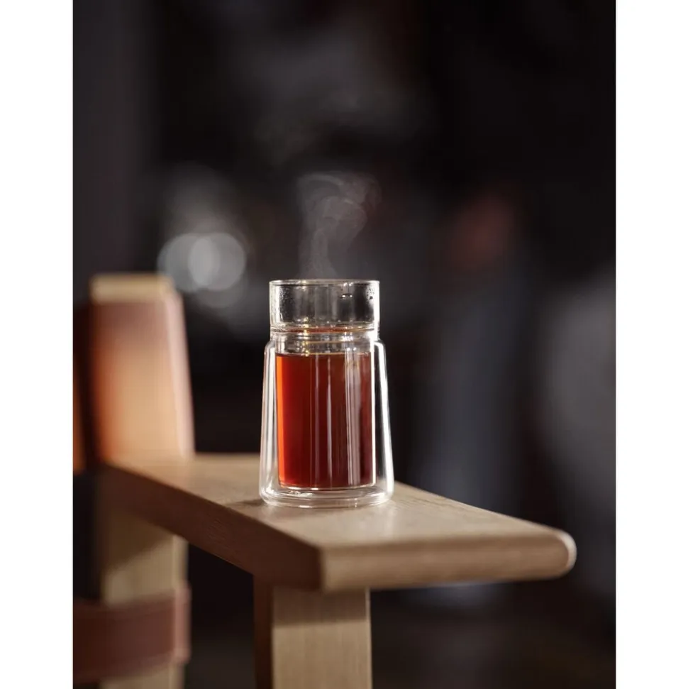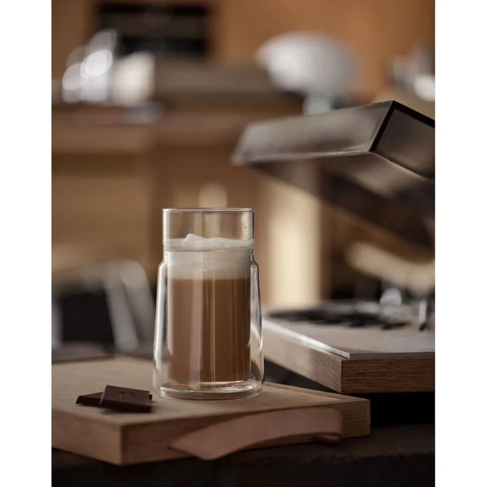 Glassene kombinerer elegant en dobbeltvægget krop med en enkeltvægget kant. Den tynde kant sikrer en behagelig drikkeoplevelse, mens dobbeltvæggen sørger for, at drikken bevarer den perfekte temperatur og beskytter dine fingre mod varme.