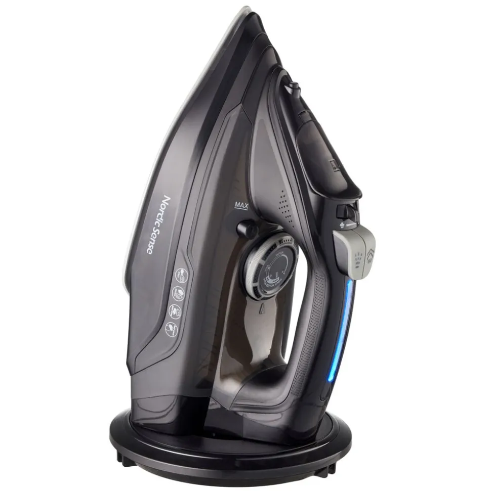 Ledningsfrit dampstrygejern med en keramisk strygesål, som glider let og behageligt hen over tøjet. Opvarmningstid på kun 40 sekunder og et damptryk på op til 30 g/min som kan suppleres med effektfulde dampskud på 140 g/min til de mest besværlige folder. Justerbar termostatstyring, 320 ml vandtank, indikatorlys og en fleksibel 360 graders base. Strygejernet har desuden en vertikal dampfunktion, som gør det muligt at fjerne folder på hængende tekstiler. Nem vedligeholdelse med selvrensende funktion, der sikrer en optimal ydeevne.