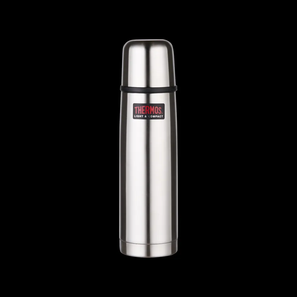 Thermos 0,5 liter termoflaske i rustfrit stål med autostopper. Låget kan bruges som kop, og flasken er velegnet til både kolde og varme drikke. Holder indholdet varmt i op til 12 timer og koldt i op til 24 timer.