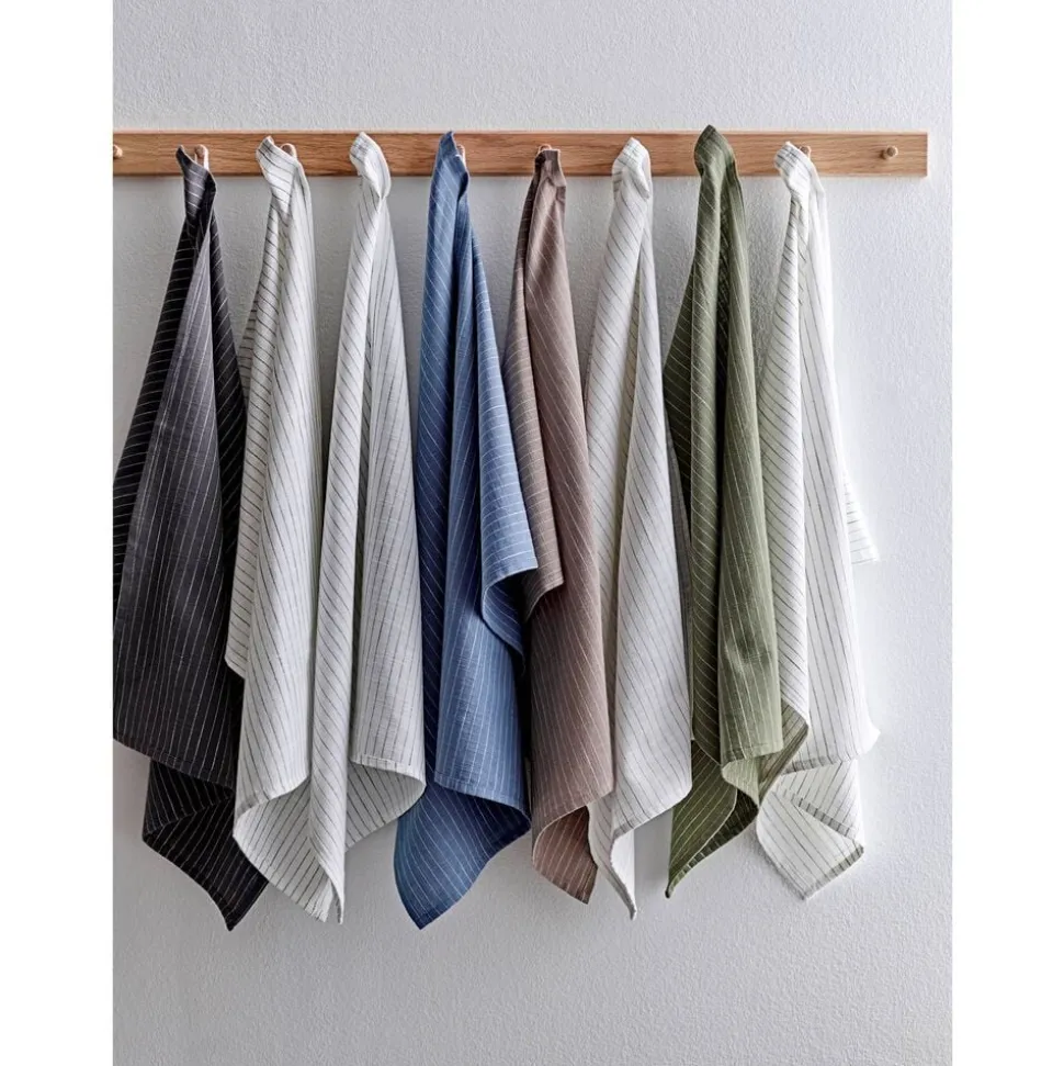 Rene linier og ro for øjet opnår man med denne duo. I hver viskestykkepakke er der en lys og en mørk variant af den klassiske nålestrib. Stilen er ren og enkel, en ny klassiker til hverdagsbrug.