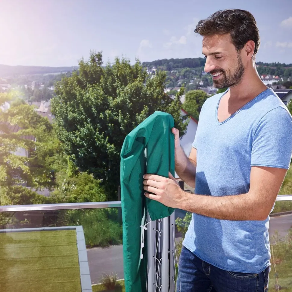Stativet vejer kun ca. 3,5 kg og er let at transportere. Overtræk medfølger, så stativet nemt kan beskyttes mod snavs – rene snore, rent vasketøj. Stativet har 14 meter tørreplads, svarende til en maskinvask. Den yderste række snore har en bredde på 110 cm og dermed god plads til brede stykker vasketøj. Sammenslået højde 147 cm, opslået makshøjde 110 cm. Tørrearealet måler 83 x 116 cm, når stativet er slået ud.