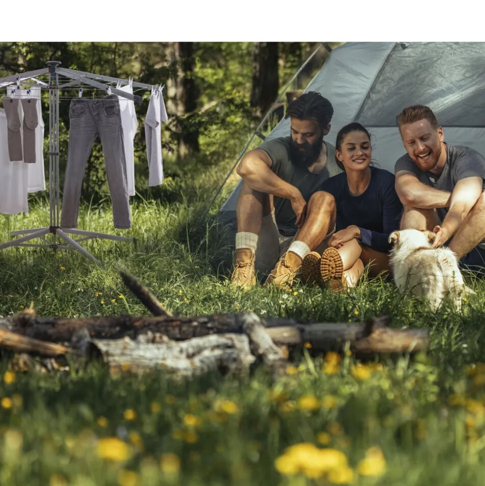 Handy og kompakt paraplytørrestativ på fod. Stativet kan slås op og lukkes sammen med én hånd blot ved at aktivere en enkelt knap, og det fylder kun lidt ved opbevaring. Velegnet til eksempelvis campingferien, balkonen og mindre boliger.