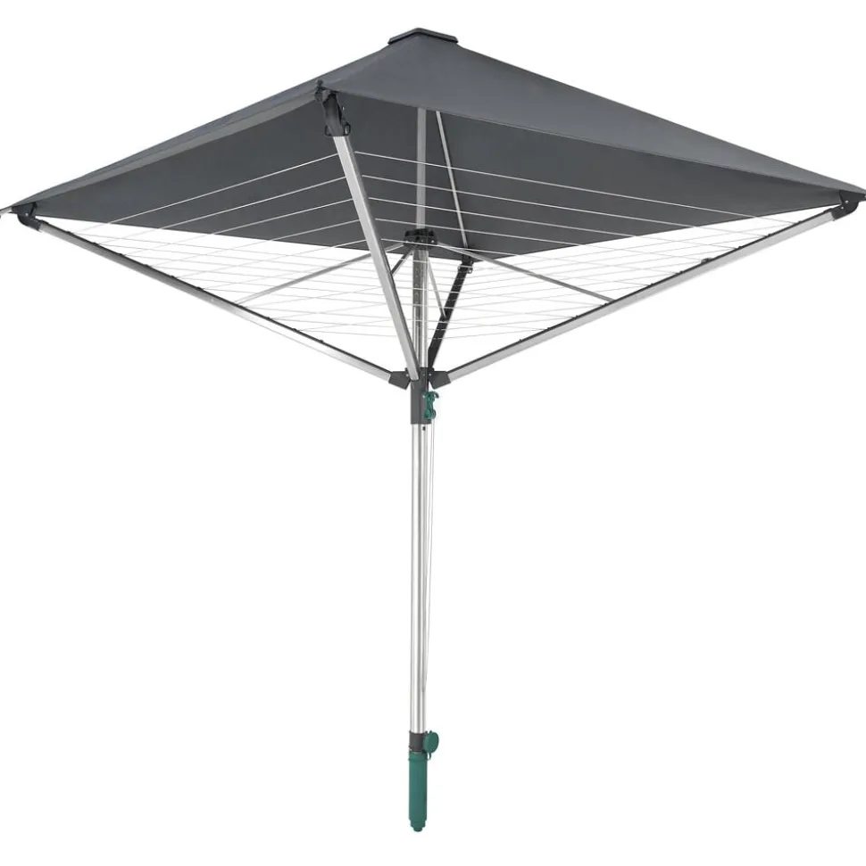 Selve stativet har en anordning som gør, at stativet ikke kan “lette” i blæsevejr (op til vindstyrke 5). Tørrestativet er supernemt at åbne, man trækker bare i en snor og så er stativet slået op. Der medfølger en holder til nedstøbning. LinoProtect 400 tørrestativet er lavet i aluminium og produceret på Leifheit’s egen fabrik i Tyskland, og er certificeret af TüV/ GS. 3 års garanti.