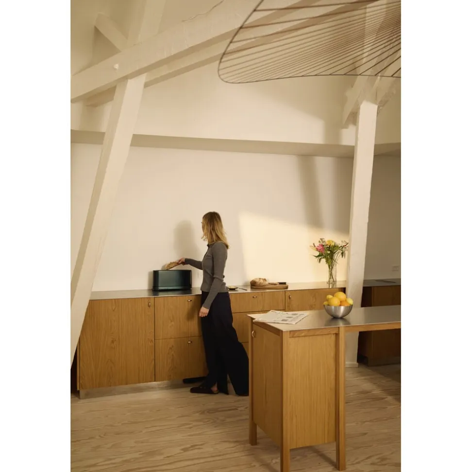 Jacob Jensens Long Slot brødrister er skabt til at løfte din morgenrutine til et nyt niveau. Det elegante design indeholder et display, der vækkes til live, når din hånd nærmer sig, ligesom det slukker, når brødristeren ikke er i brug. Brødristeren kan placeres enten langs en væg eller stå fritstående med displayet altid let tilgængeligt.