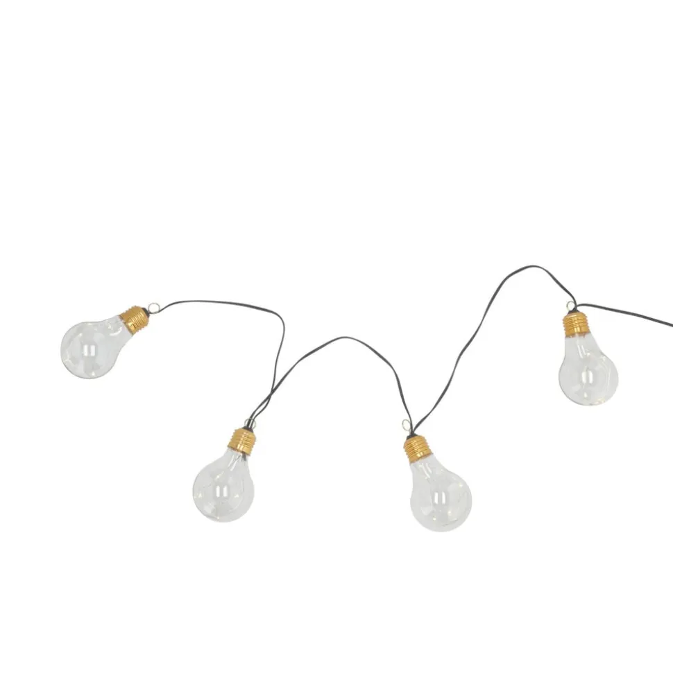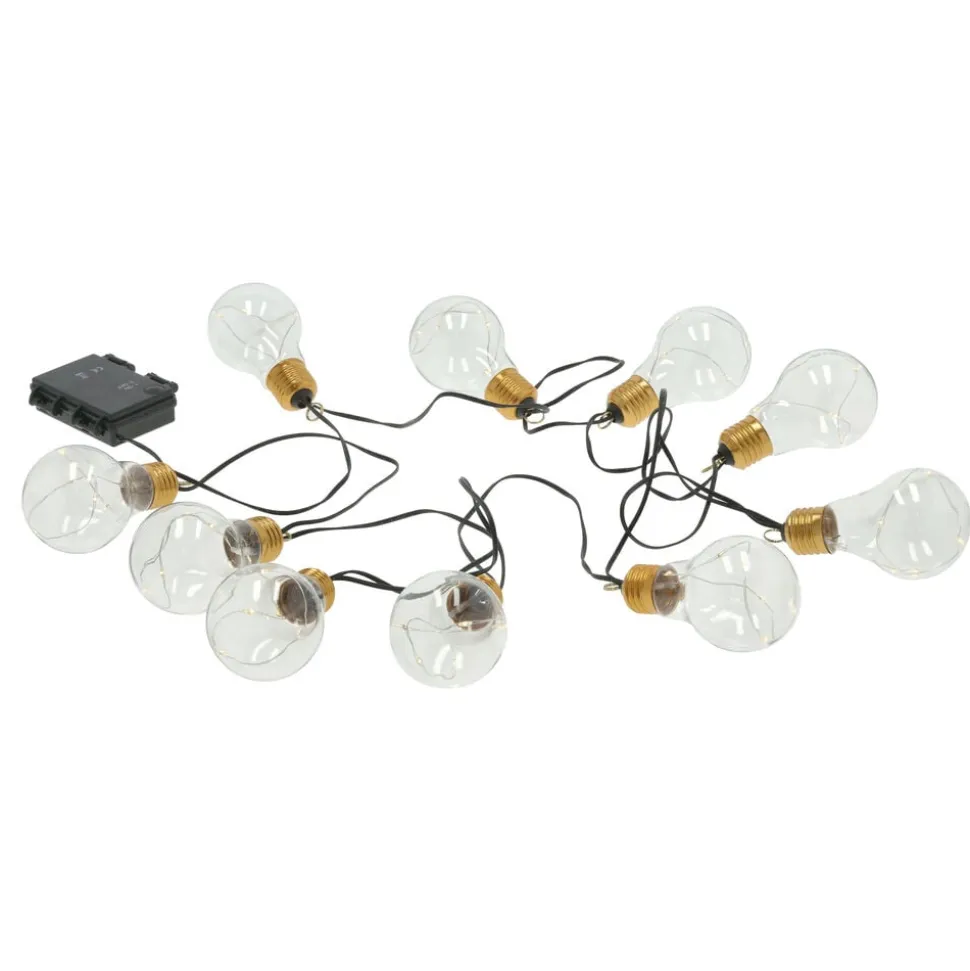 Lad lyset skinne klart, så alle kan se, at der er noget at fejre. Den 3,2 m lange LED lyskæde har 10 transparente pærer i glas, der hver måler 6 x 10,5 cm. Mellem hver pære er der en afstand på 30 cm, og afstanden mellem batteriboksen og den første pære er 50 cm. Tænd for lyset med 3 x AA batterier (ikke inkluderet), og hæng kæden op indendørs for særlig festlig belysning.