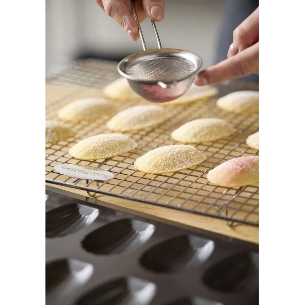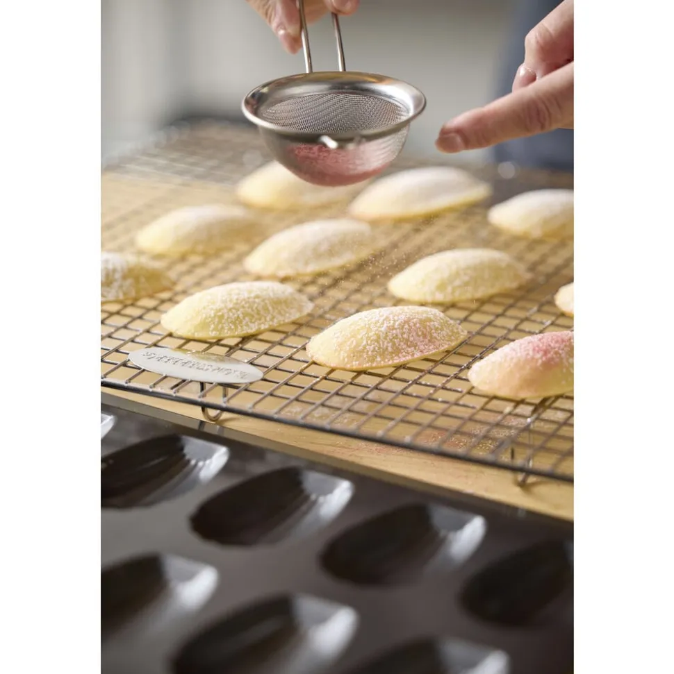 Solid stålform med plads til at bage 12 fine madeleinekager ad gangen. Formens karakteristiske facon giver de små klassiske kager et smukt og elegant ydre – præcis som en ægte madeleine skal se ud. Madeleines er lette og luftige kager, opkaldt efter den franske konditor Madeleine Paulmier, og med denne form får du den klassiske facon og et flot, ensartet resultat hver gang.