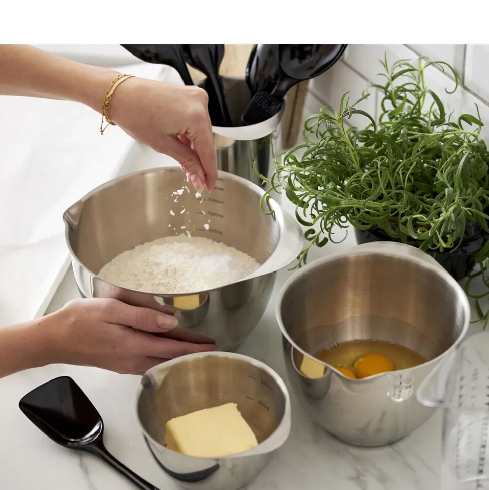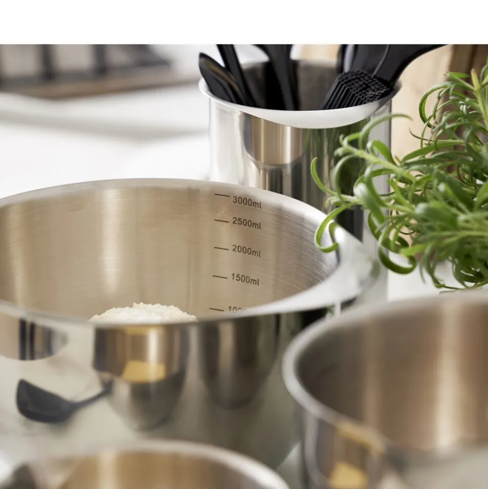 Vær opmærksom på, at plastlågene til plastikskålene ikke passer til Margrethe-skålen i stål. Det er endnu ikke muligt at købe låg til Margrethe-skålene i rustfrit stål.