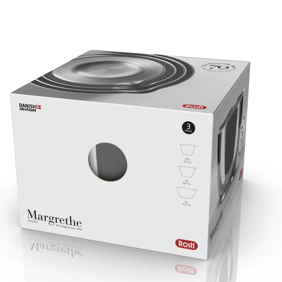 Margrethe-skålen er designet for Rosti af Sigvard Bernadotte og Acton Bjørns tegnestue i København og i 1954 med kongehusets tilladelse opkaldt efter dronning Margrethe 2. Fås også i plast i et væld af flotte farver og forskellige størrelser.