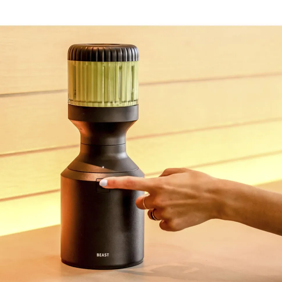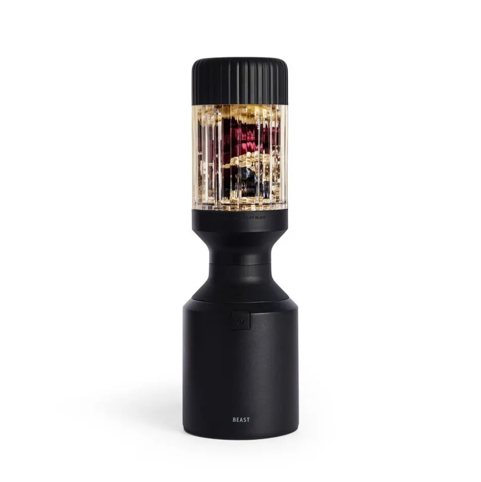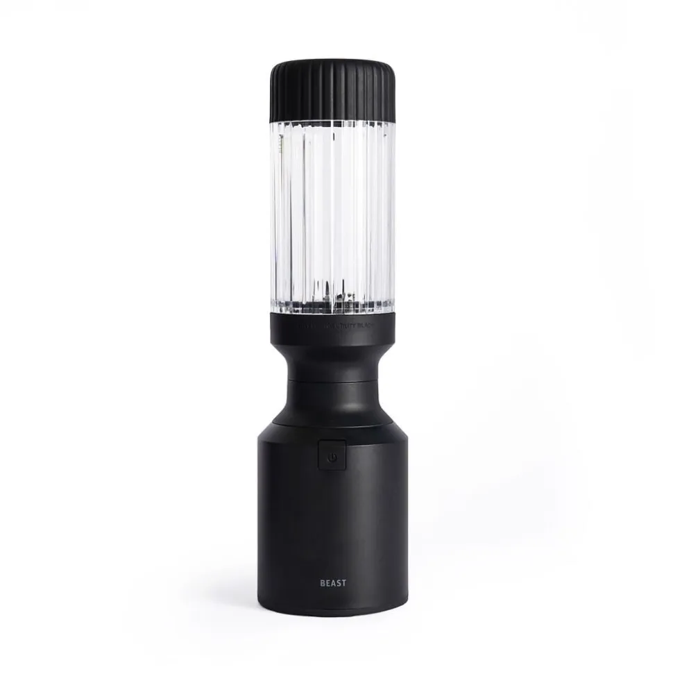 Beast Mega Plus 1200 leveres med tre blenderbeholdere (500, 1000 og 1200 ml), der fungerer som drikkebeholdere, når du sætter drikkelåg og sugerørshætte på og tager dem med dig på farten. Den rillede beholder giver dig et godt greb.