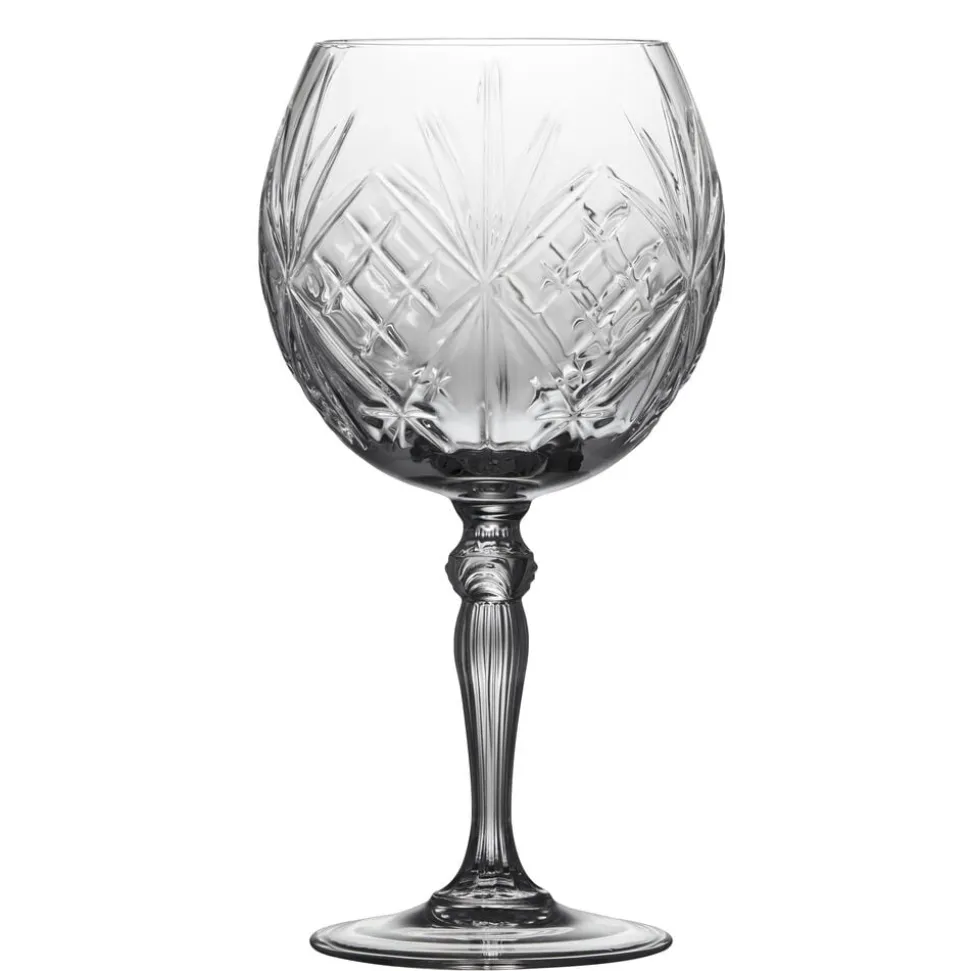 Nyd en forfriskende G&T af det klassiske glas, som fremhæver drikkens nuancer, når omgivelsernes lys og skygger reflekteres i glassets smukke mønster. Tåler opvaskemaskine. 65 cl, 4 stk.