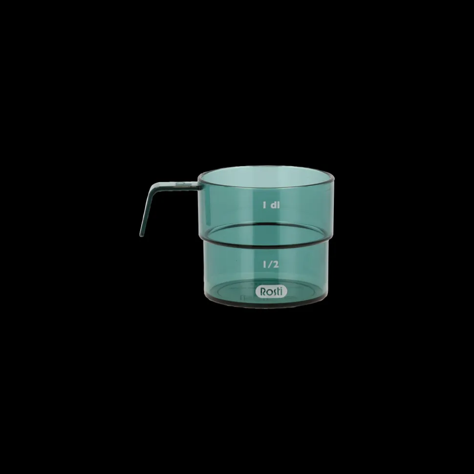 Mensura decilitermålet har et markant design med en tydelig markering midtpå, som angiver en halv deciliter. Den samme markering i formgivningen gør det nemt at stable flere målebægre. Håndtaget giver et godt og sikkert greb.