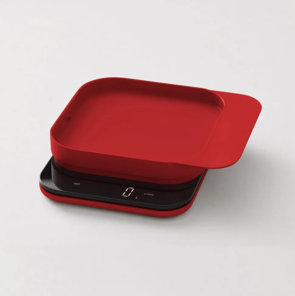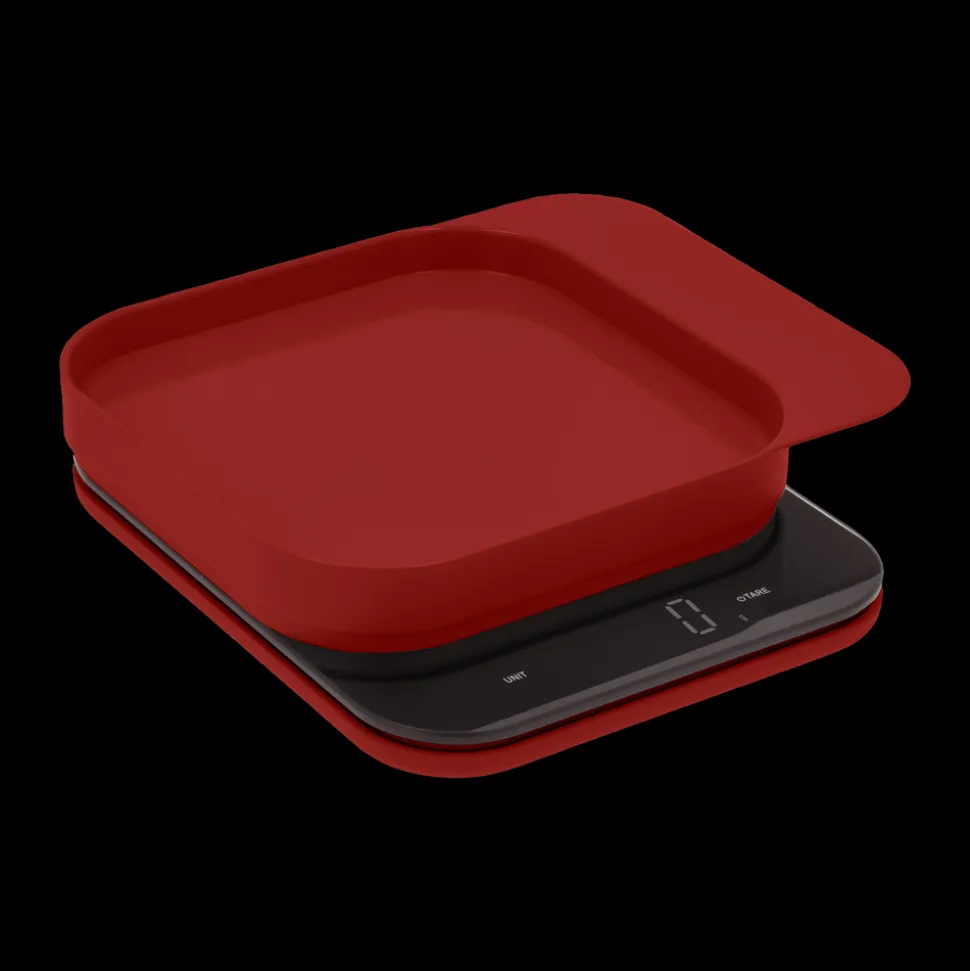 Der kan skiftes mellem flere måleenheder, g, kg, oz, lb, ml, fl oz, og vægten har tarafunktion. Tændes manuelt og slukker automatisk. Fire L-formede silikonefødder i samme farve som vægten er placeret under bunden.