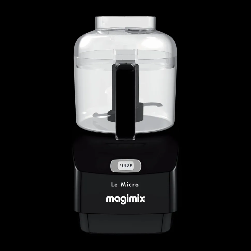 Magimix minihakker er effektiv, stilfuld og støjsvag. Den optager kun lidt plads på køkkenbordet og har et så flot design, at du gerne lader den stå fremme. Betjeningen er enkel. Låget har to åbninger til påfyldning af henholdsvis flydende og faste ingredienser, sættes let på og tages lige så nemt af. På fronten findes en enkelt knap til at aktivere både pulse-funktion og kontinuerlig kørsel, når knappen holdes nede.