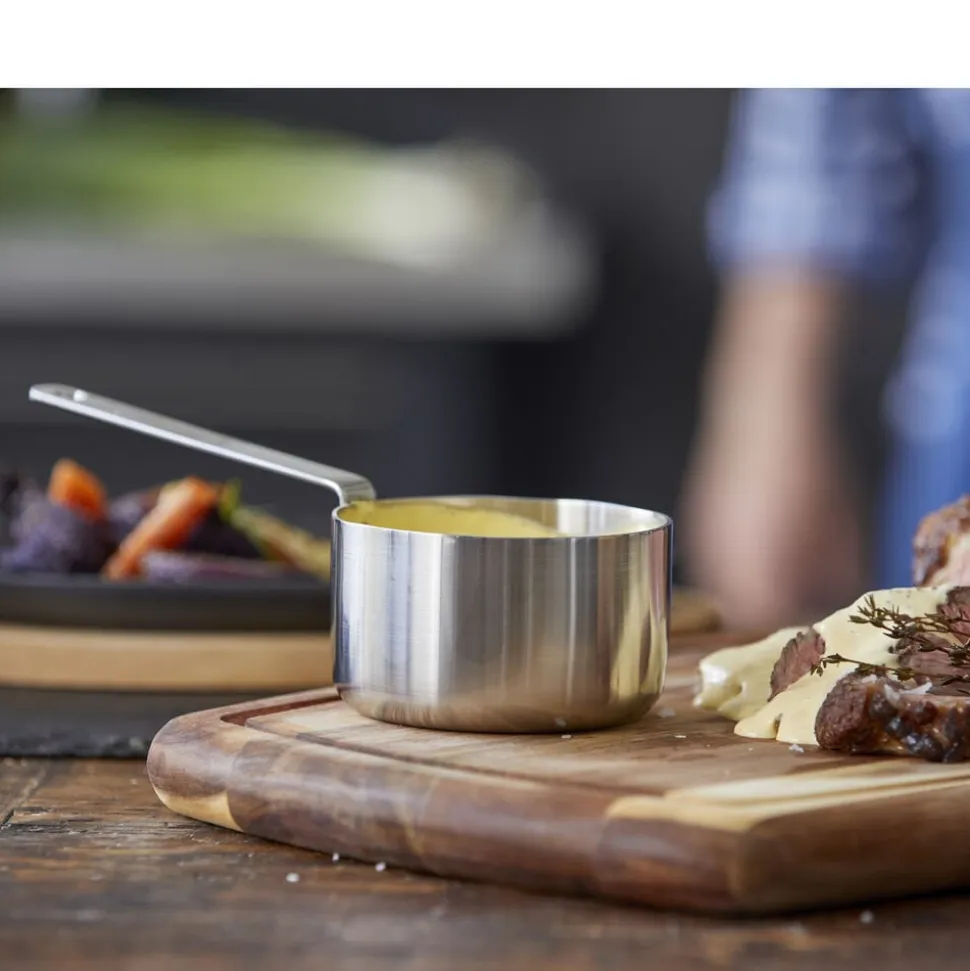 Minikasserolle i satinpoleret rustfrit stål 3-PLY (aluminiumkerne med rustfrit stål på indvendig og udvendig side, fra bund til kant). Denne konstruktion gør, at varmen fordeles jævnt og effektivt. Minikasserollen er ideel til både madlavning og servering af f.eks. portionsanrettet suppe, sauce eller en lille simreret. Den er egnet til alle varmekilder, inkl. induktion, samt ovn op til 250 grader og kan vaskes i opvaskemaskinen. Koges af eller vaskes i opvaskemaskine før første brug. Dia. 10 cm, højde 6 cm.