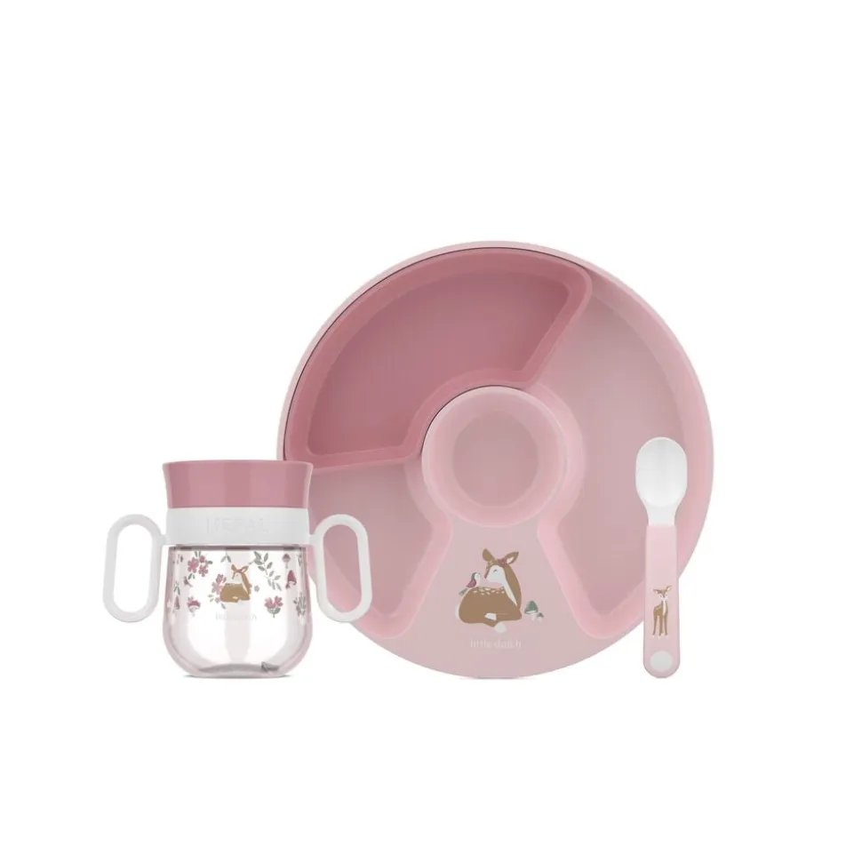 Mio Begyndersæt til små børn, der skal lære at spise og drikke selv. Sættet består af en tallerken med opdeling, en begynderkop 200 ml og en ske. Velegnet til opvaskemaskine. Fra ca. 6 måneder.