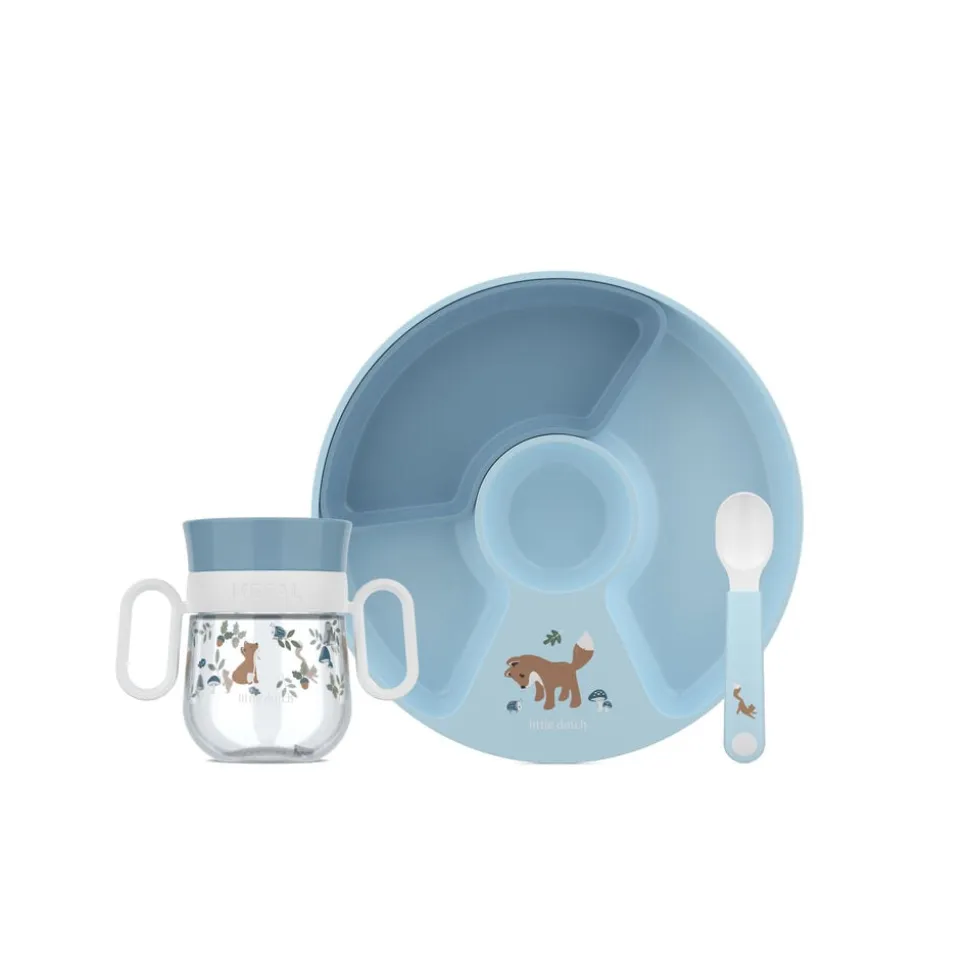Mio Begyndersæt til små børn, der skal lære at spise og drikke selv. Sættet består af en tallerken med opdeling, en begynderkop 200 ml og en ske. Velegnet til opvaskemaskine. Fra ca. 6 måneder.
