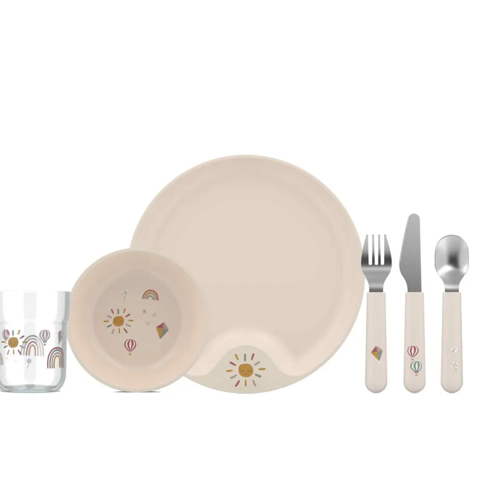 Mio Børnesæt er et godt og praktisk valg til de mindre børn. Sættet består af 6 dele, der passer til ethvert måltid – tallerken, skål, glas samt bestiksæt med kniv, gaffel og ske. Velegnet til opvaskemaskine.