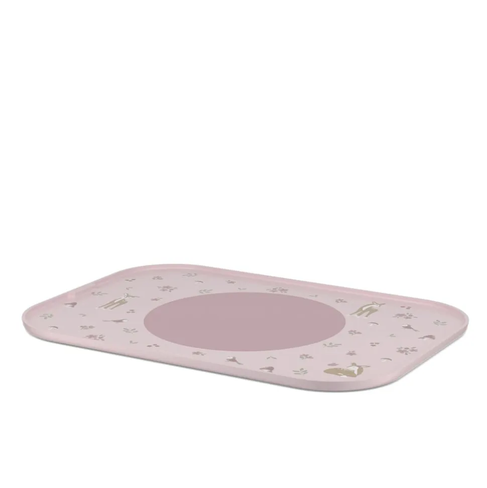 Den robuste dækkeserviet kan fungere både som bakke og dækkeserviet – en detalje, der giver perfekt mening i daglig brug. Dækkeservietten er fremstillet af PP-plast og udstyret med en skridsikker cirkel af silikone, der holder tallerkenen på plads, mens barnet spiser. Cirklen kan fjernes, og dermed bliver rengøringen endnu nemmere. Vaskes nemt i opvaskemaskinen. 28 x 40 cm.