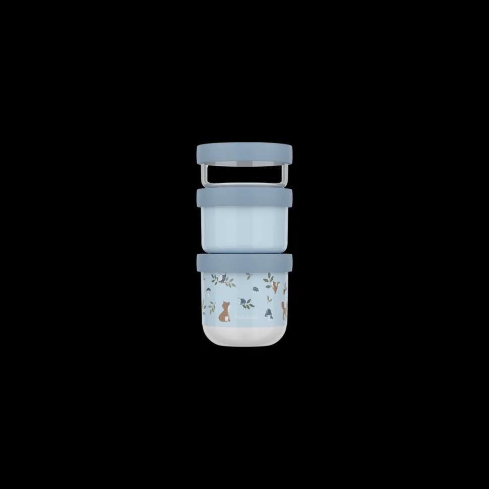 Mio snackboks-tårn består af tre snackbokse i forskellige størrelser, som nemt kan klikkes sammen og tages med på tur. Alle boksene har tætsluttende skruelåg. Den mindste boks er transparent og rummer 100 ml, den mellemste er ensfarvet og rummer 175 ml, mens den største har et karakteristisk Mio-motiv og rummer 275 ml. Alle tre størrelser tåler fryser, og de to største bokse kan også anvendes i mikroovn.