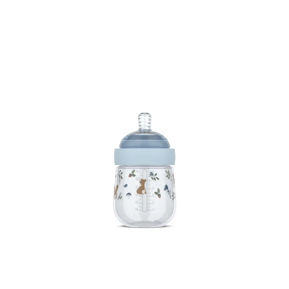 Mio sutteflaske giver din baby komfort og dig maksimal tryghed. Suttedelen er lavet af medicinsk silikone og designet til at føles naturlig og velkendt. Uanset om baby ligger trygt i mors eller fars arme, er det roligt og behageligt at drikke af Mio sutteflasken.