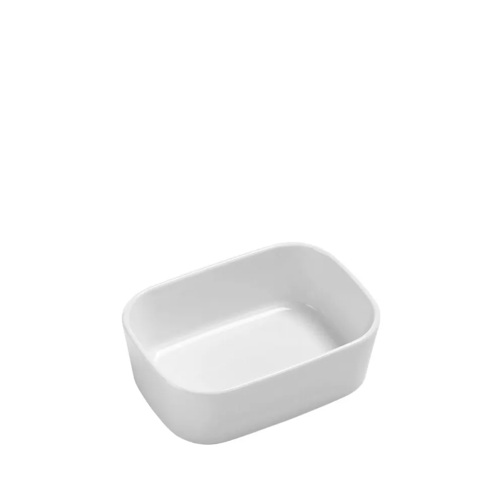 Ovnfast fad i hvidt porcelæn til det skandinaviske køkken. Fadet er fremstillet i forstærket porcelæn, der kan tåle ovntemperatur helt op til 350 grader. Den høje kant og praktiske form giver mange anvendelsesmuligheder. 15 x 11 x 5 cm.