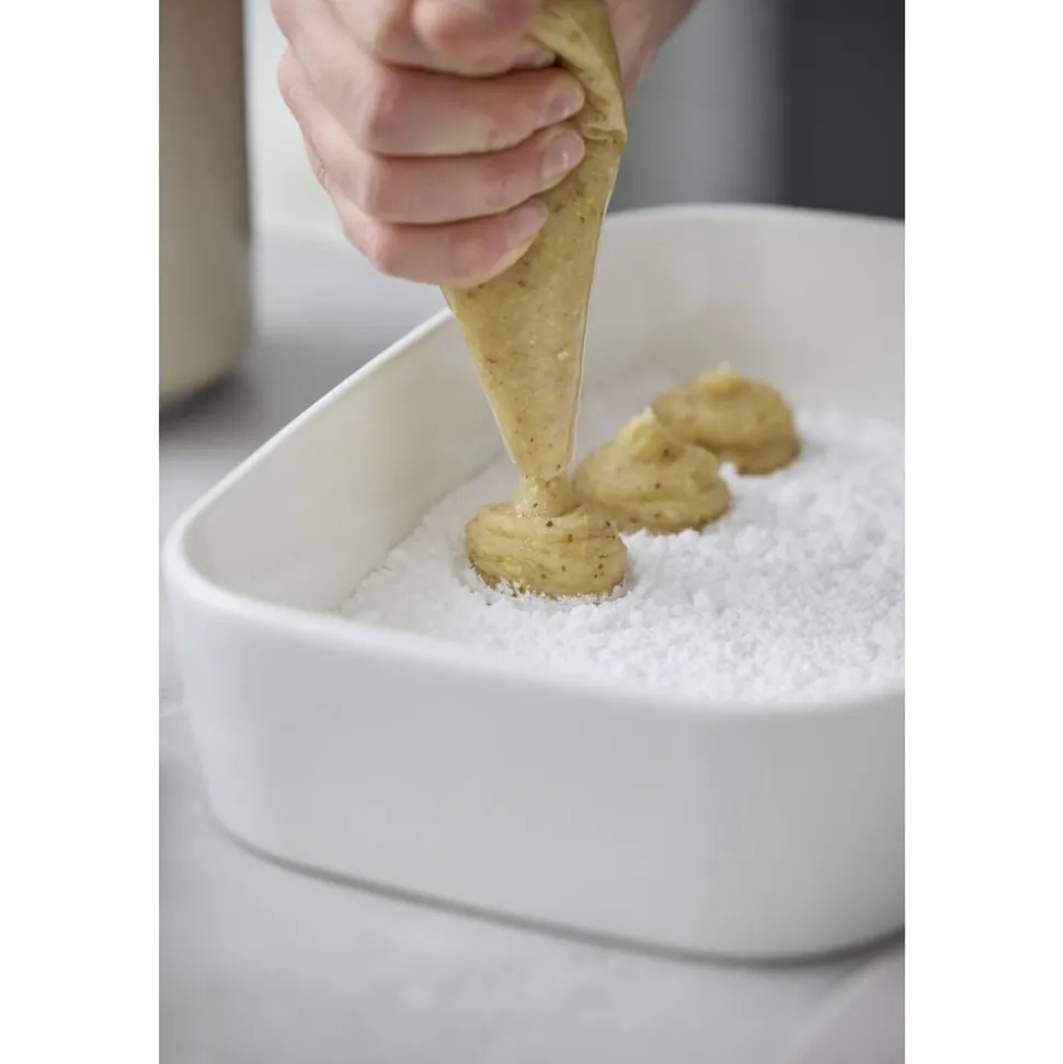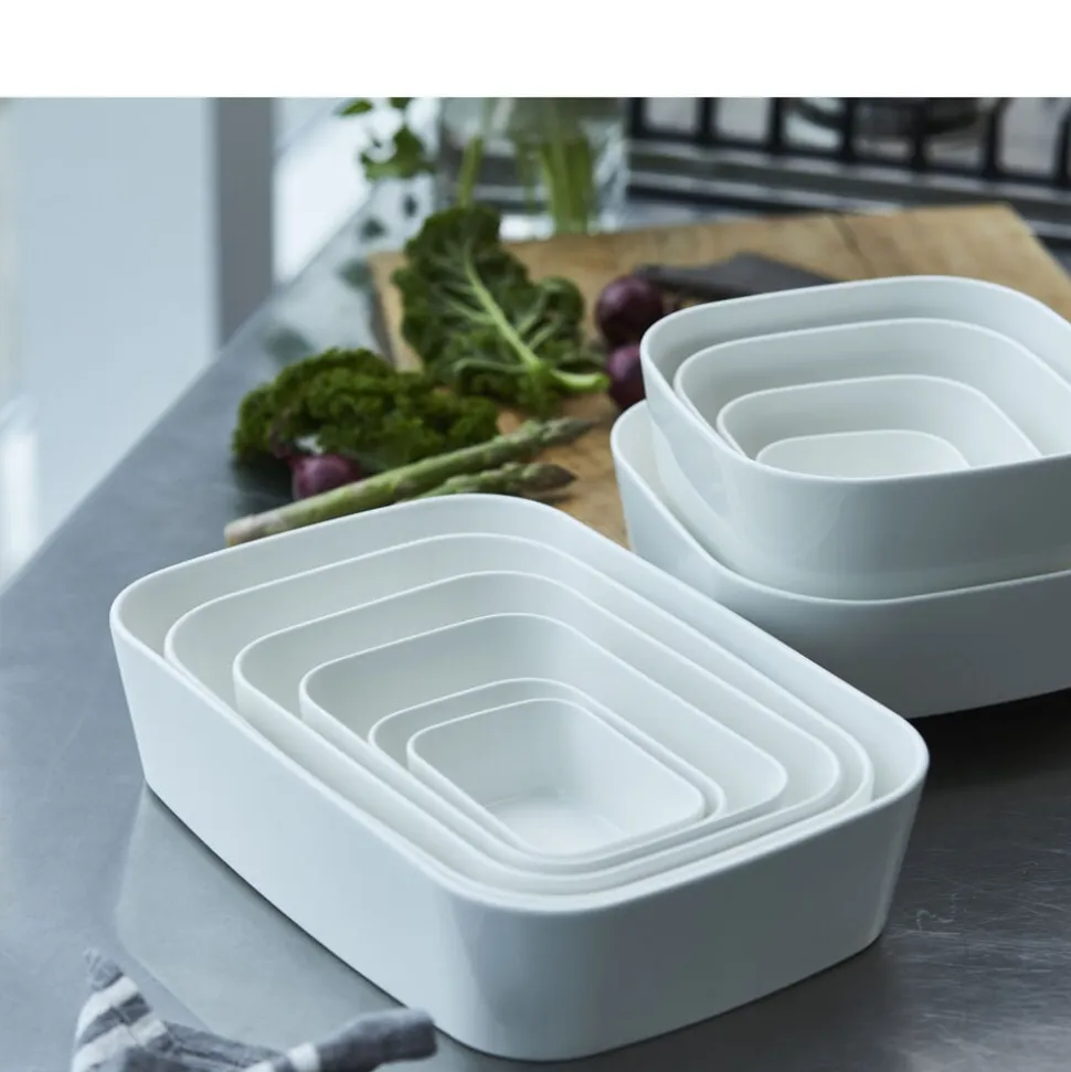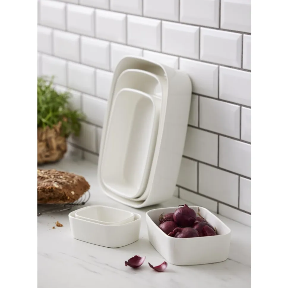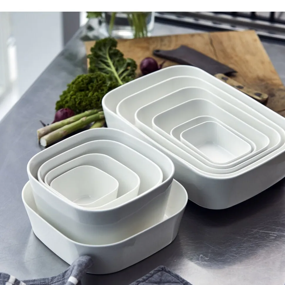 Ovnfast fad i hvidt porcelæn til det skandinaviske køkken. Fadet er fremstillet i forstærket porcelæn, der kan tåle ovntemperatur helt op til 350 grader. Den høje kant og praktiske form giver mange anvendelsesmuligheder. 25 x 18 x 6,5 cm.