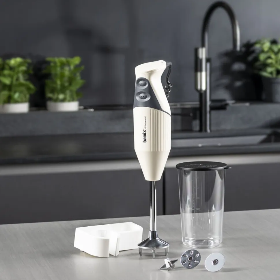 Med din bamix® Mono og dens tilbehør kan du piske, purere, røre, blende, mikse, mose, knuse og hakke.