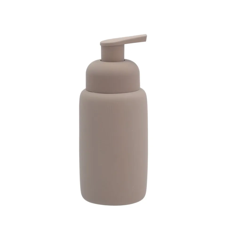 Södahls matte badserie har soft rubbercoating all over, også på sæbedispensertud og toiletbørsteskaft. Kruset er med lækker kontrastfarvet, blank glasur indvendigt.