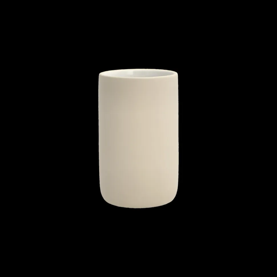 Södahls matte badserie har soft rubbercoating all over, også på sæbedispensertud og toiletbørsteskaft. Kruset er med lækker blank glasur indvendigt.