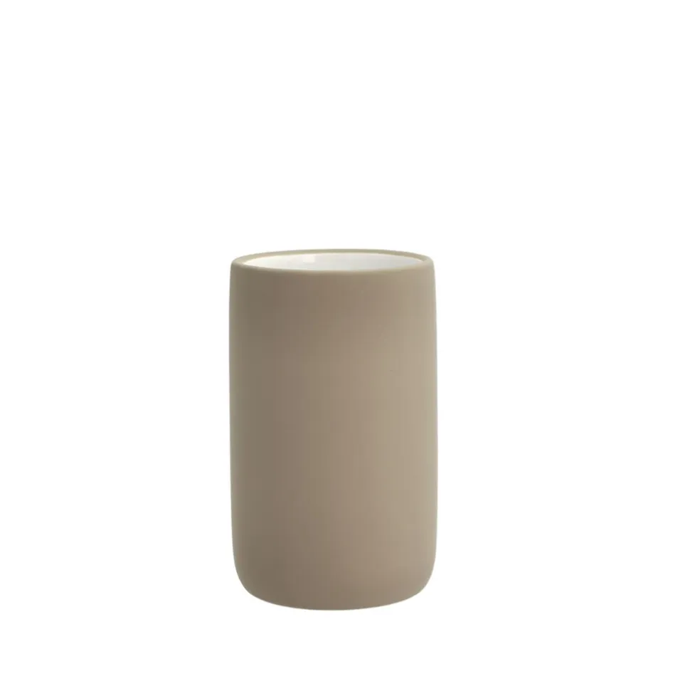 Södahls matte badserie har soft rubbercoating all over, også på sæbedispensertud og toiletbørsteskaft. Kruset er med lækker blank glasur indvendigt.