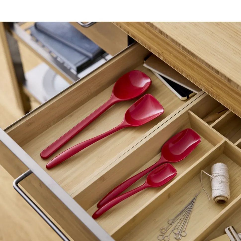 Sæt med 4 Rosti-grydeskeer i forskellige udformninger. Grydeskeer i flere størrelser dækker de fleste behov, når der skal bages, serveres og røres i gryder og skåle. I dette sæt har vi samlet en lille grydeske, en klassisk grydeske, en bred grydeske og en bageske.